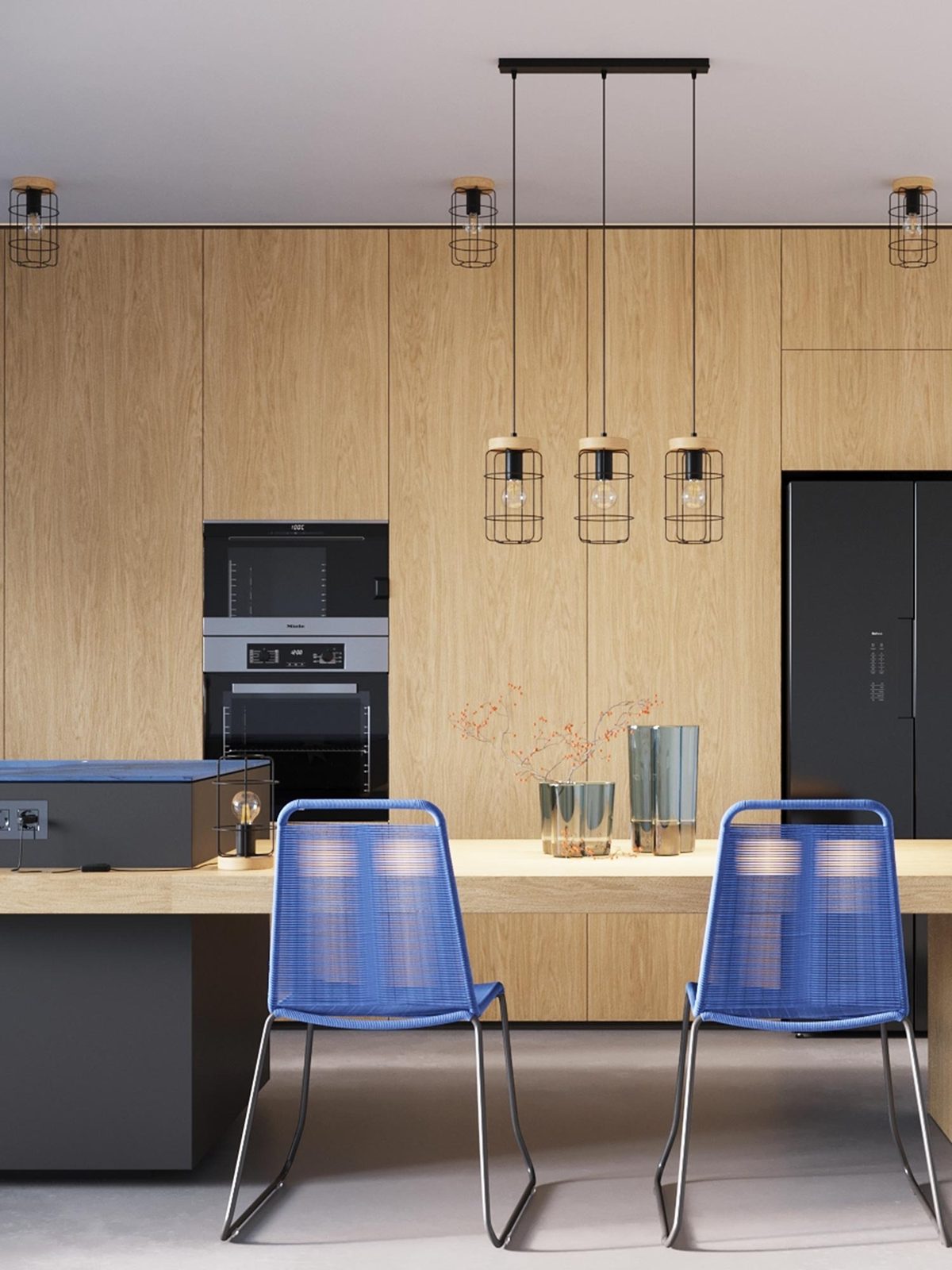 - Naturalne drewno i stal: Połączenie materiałów dodaje wnętrzom ciepła i nowoczesnego charakteru.