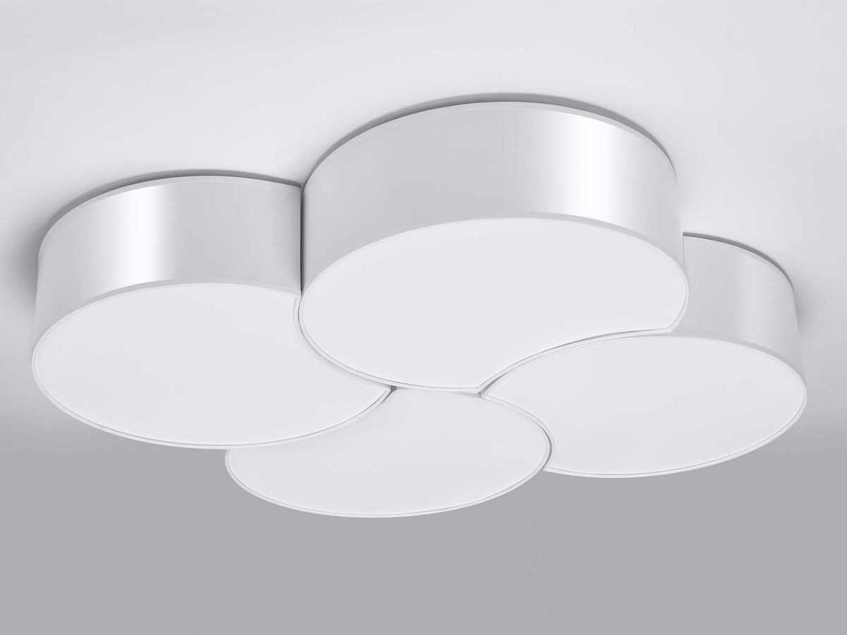 Plafon DRACO 4 Biały dostępny jest w kilku wersjach, umożliwiając tworzenie niebanalnych aranżacji – od pojedynczego plafonu, po harmonijne połączenie 2, 3 lub 4 plafonów. Lampy idealnie do siebie przylegają, tworząc imponujące źródło światła, które z powodzeniem rozświetli nawet duże pomieszczenia.