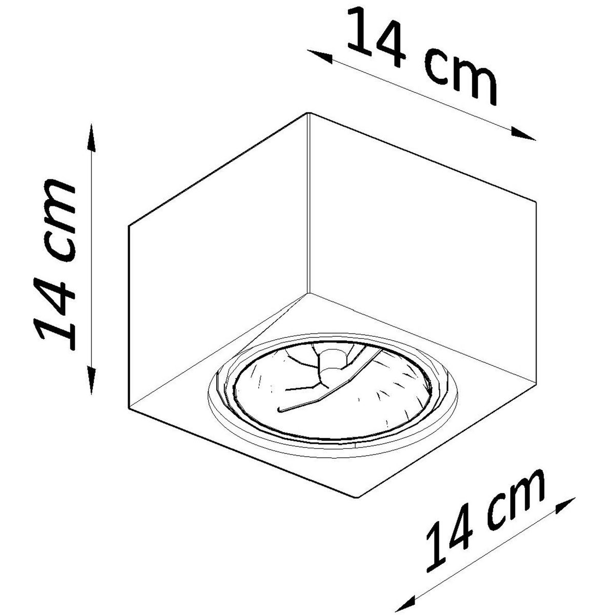 Wymiary sześciennej lampy sufitowej – 14 x 14 cm