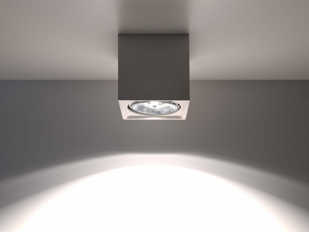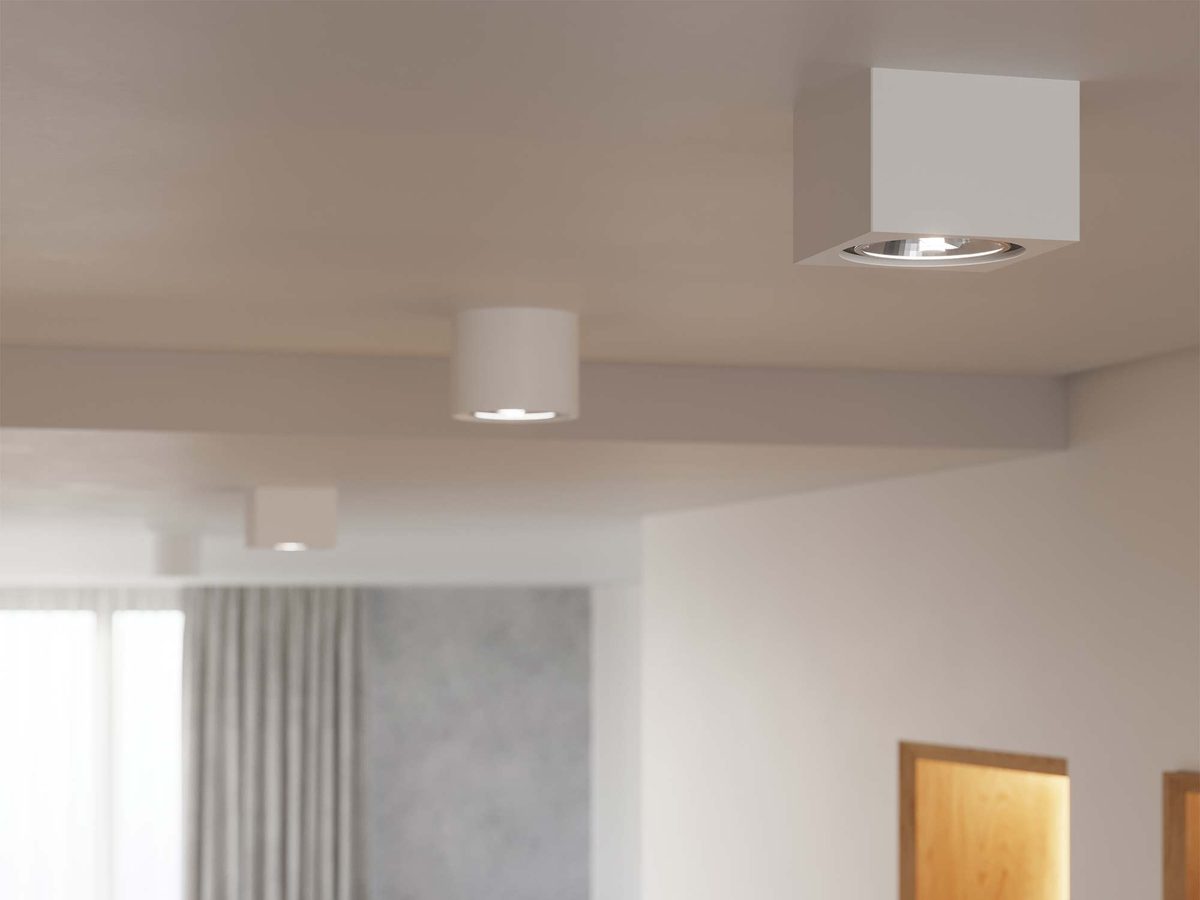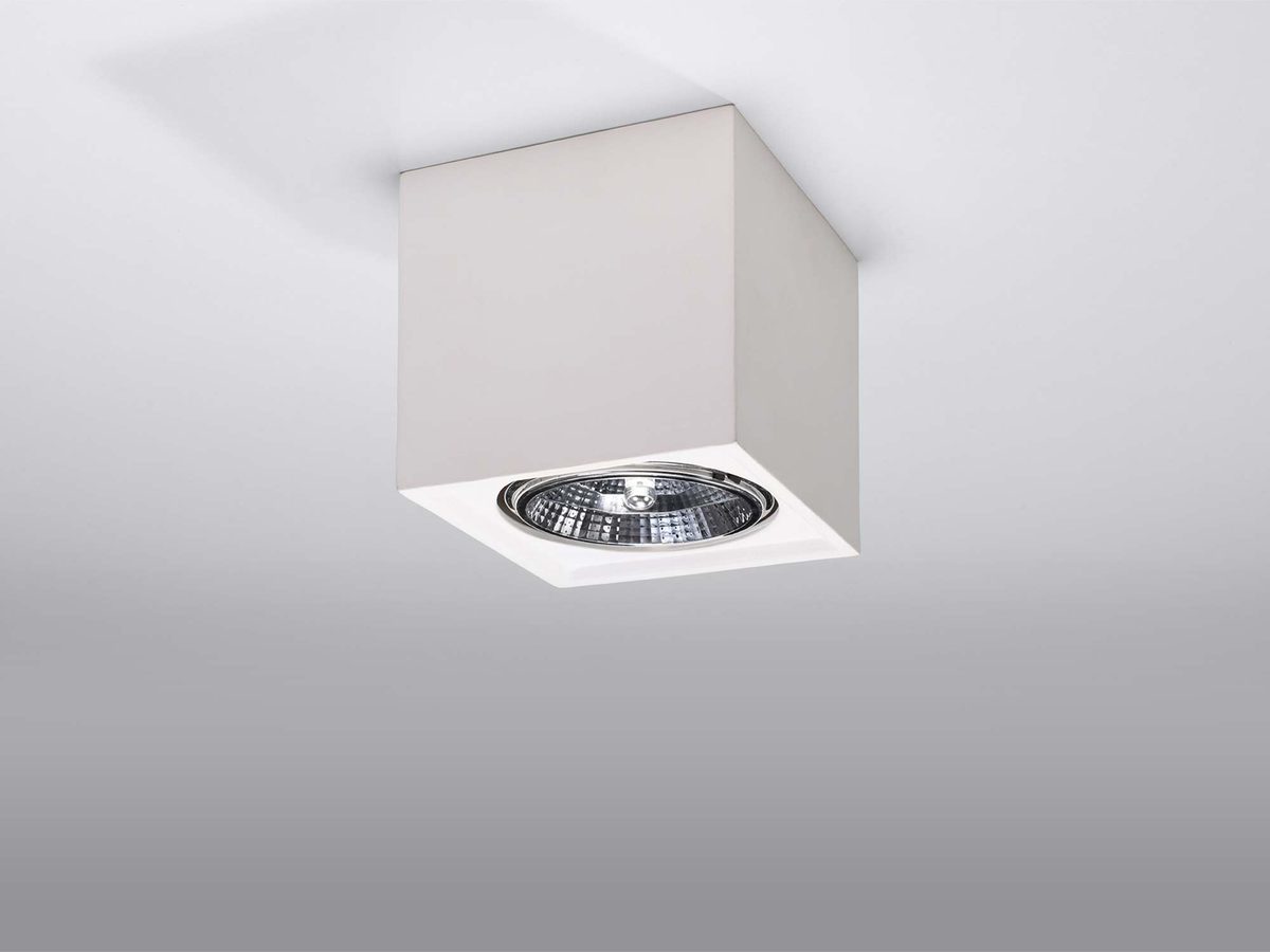 Sześcienna oprawa sufitowa w białym kolorze z reflektorem