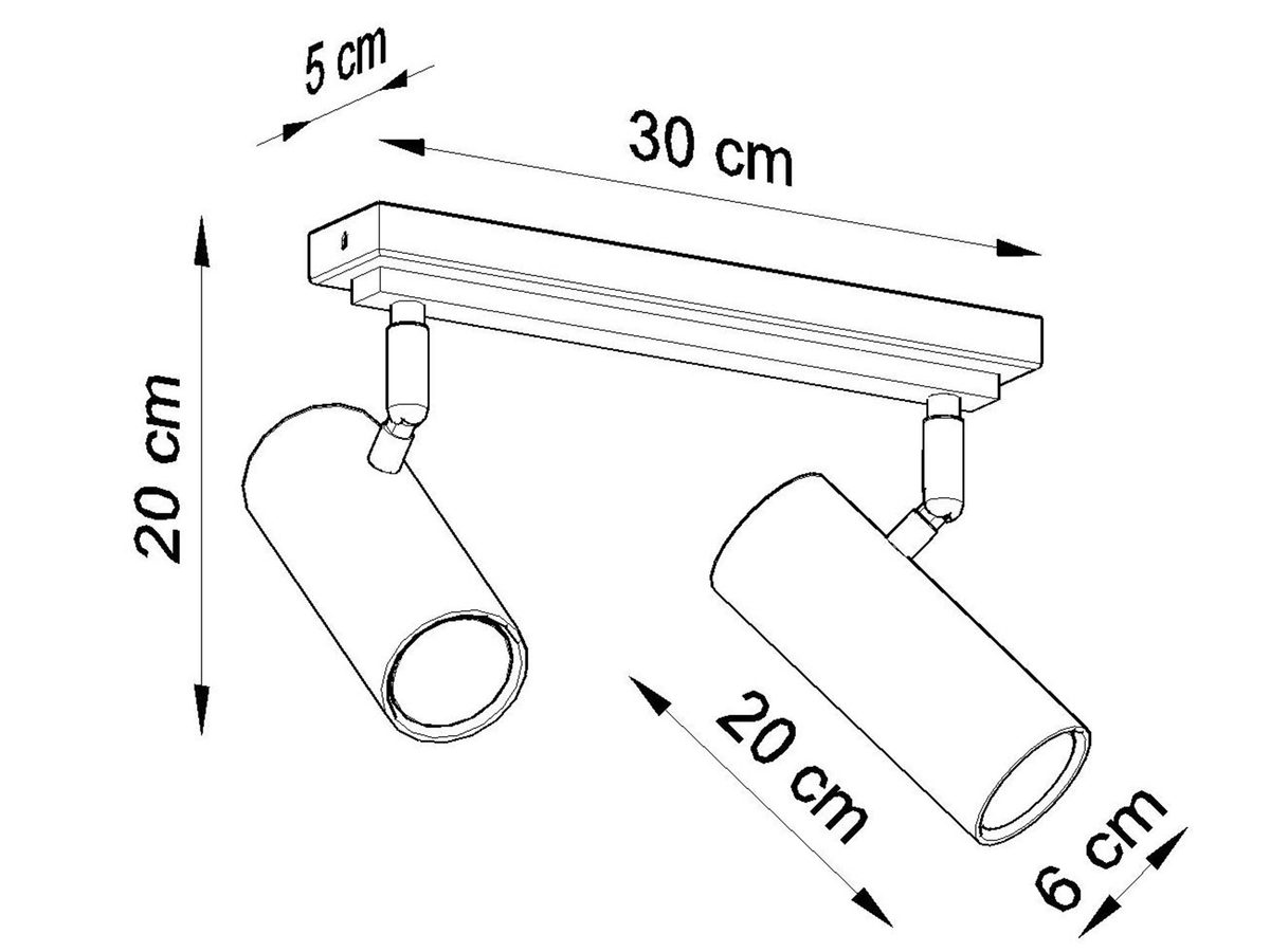 Plafon LUMIO 2 obsługuje dwie żarówki o gwincie GU10, z maksymalną mocą 40W dla tradycyjnych żarówek i 12W dla żarówek LED. Lampa wykonana jest ze stali o wymiarach 30/6/20 cm, a jej waga brutto wynosi 1,4 kg. Pamiętaj, że źródła światła nie są dołączone do zestawu.