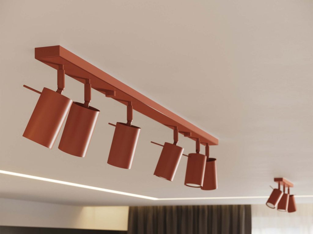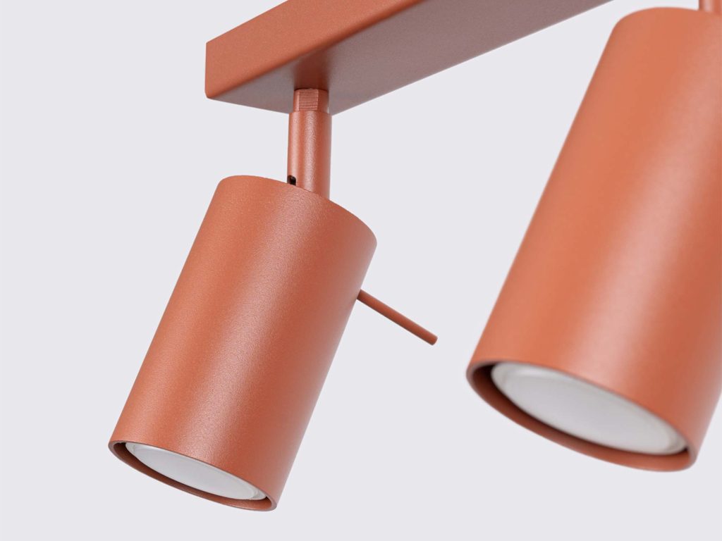 Plafon RINTO 3L ochra czerwona to propozycja dla osób, które lubią wnętrza z charakterem. Trzy reflektory zamontowane na prostokątnej podsufitce pozwalają kierować światło w wybrane miejsca – możesz podkreślić obraz, rozświetlić stół w jadalni lub zapewnić równomierne oświetlenie całego pokoju. Dzięki regulowanym głowicom lampa daje swobodę aranżacyjną i pozwala dopasować efekt świetlny do własnych potrzeb.