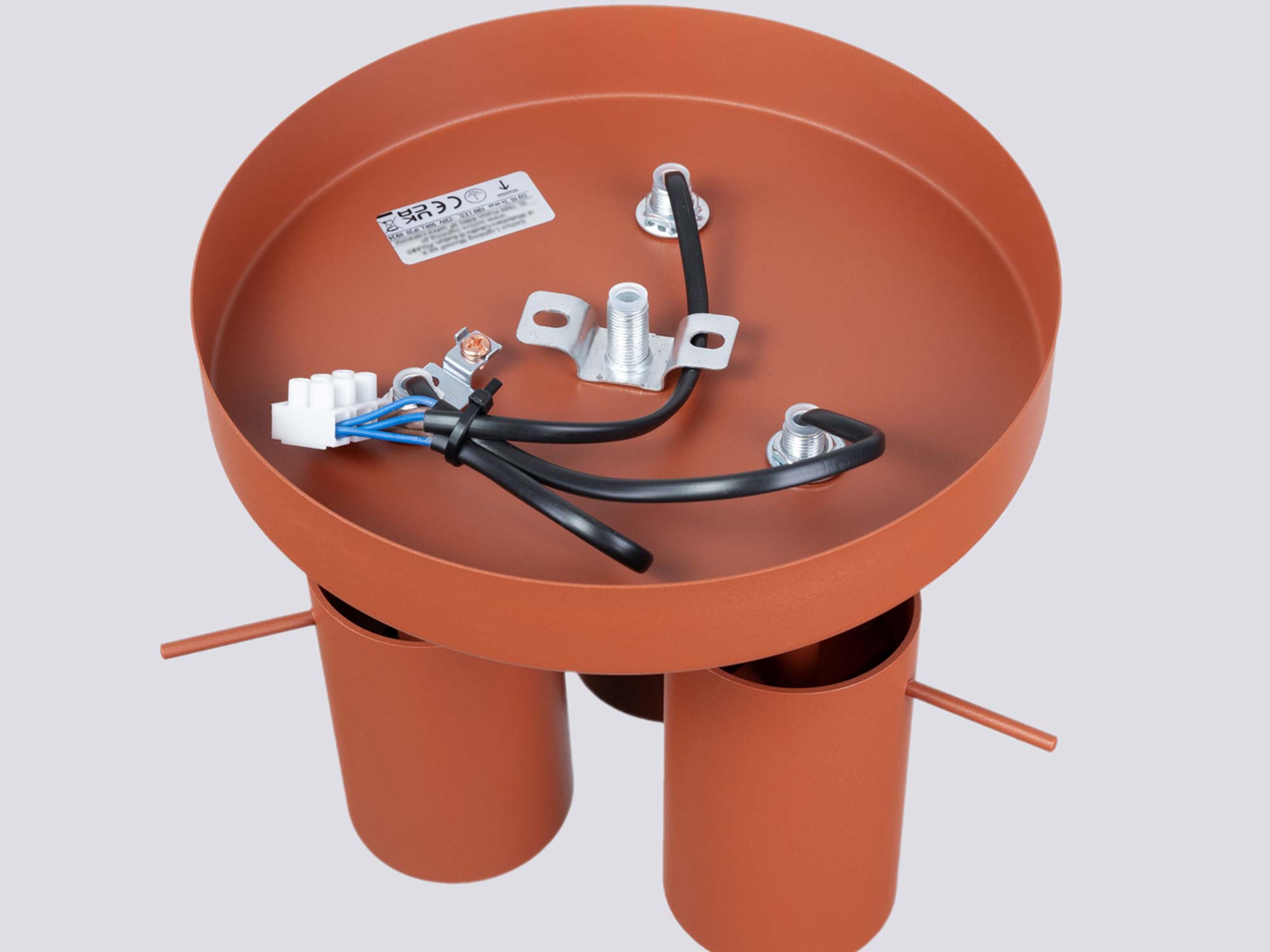 Kolor ochry czerwonej wyróżnia się na tle typowych lamp w czerni czy bieli. Jest to odcień intensywny, odważny i nowoczesny, który świetnie wpisuje się w aranżacje loftowe, industrialne, a także eklektyczne. Dzięki temu plafon RINTO 3P staje się nie tylko źródłem światła, ale również ważnym elementem dekoracyjnym wnętrza.
