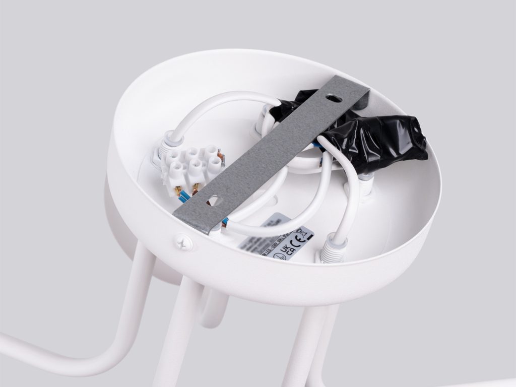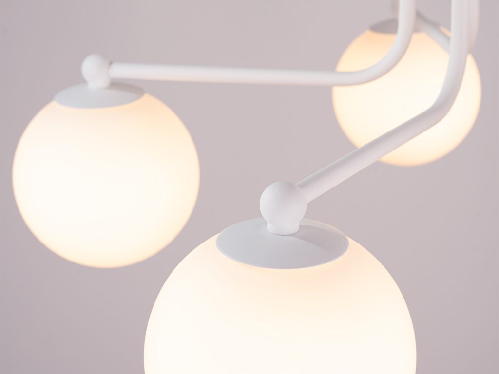 Minimalistyczna konstrukcja w połączeniu z klasyczną bielą sprawia, że żyrandol świetnie pasuje do wnętrz nowoczesnych, skandynawskich, a także glamour. Wykonany ze stali i szkła, zachwyca trwałością oraz estetyką. Lampa sprawdzi się zarówno nad stołem w jadalni, jak i w salonie czy przestrzeniach komercyjnych – restauracjach, hotelach czy biurach.