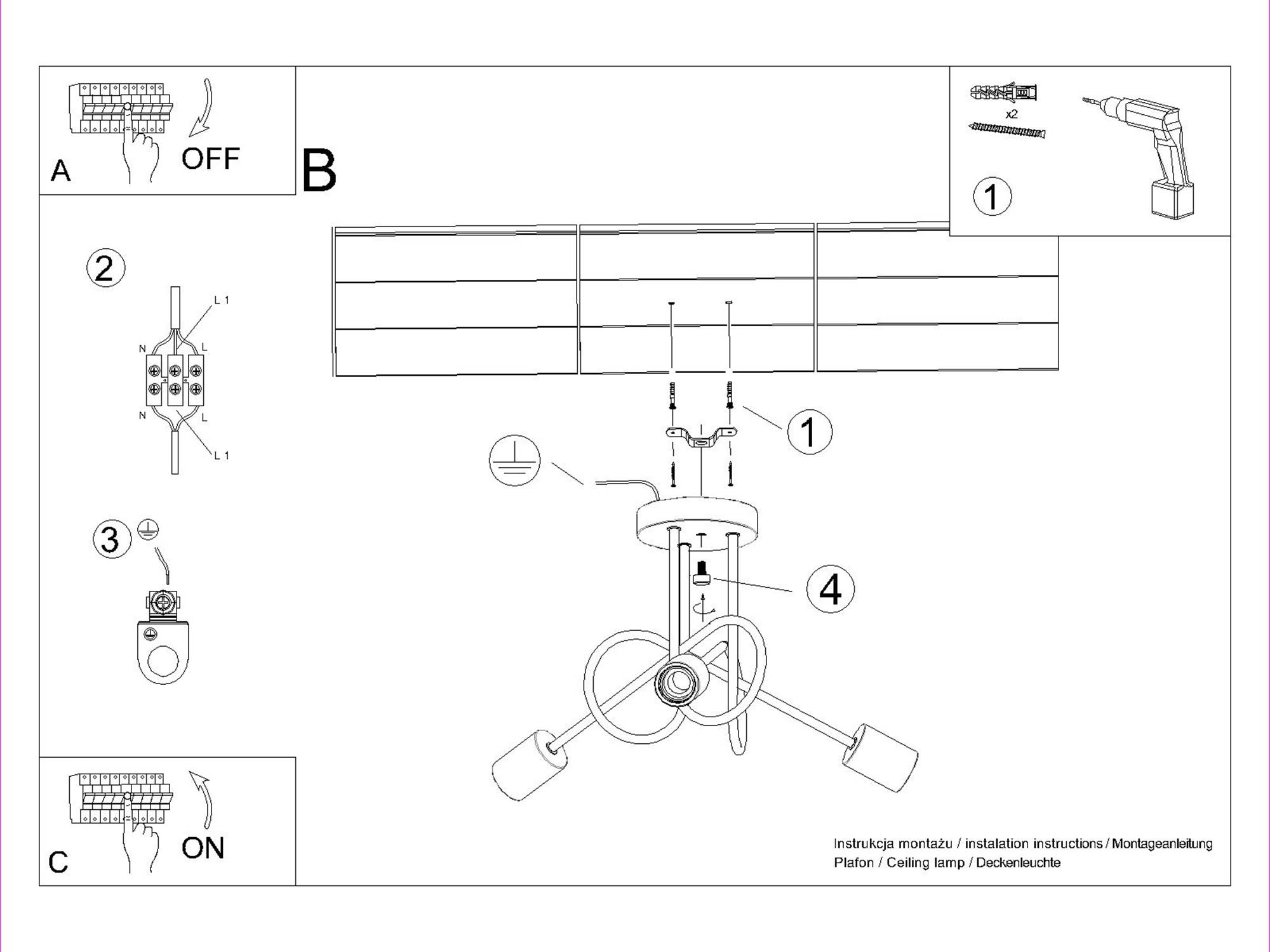 - Ilość źródeł światła: 3