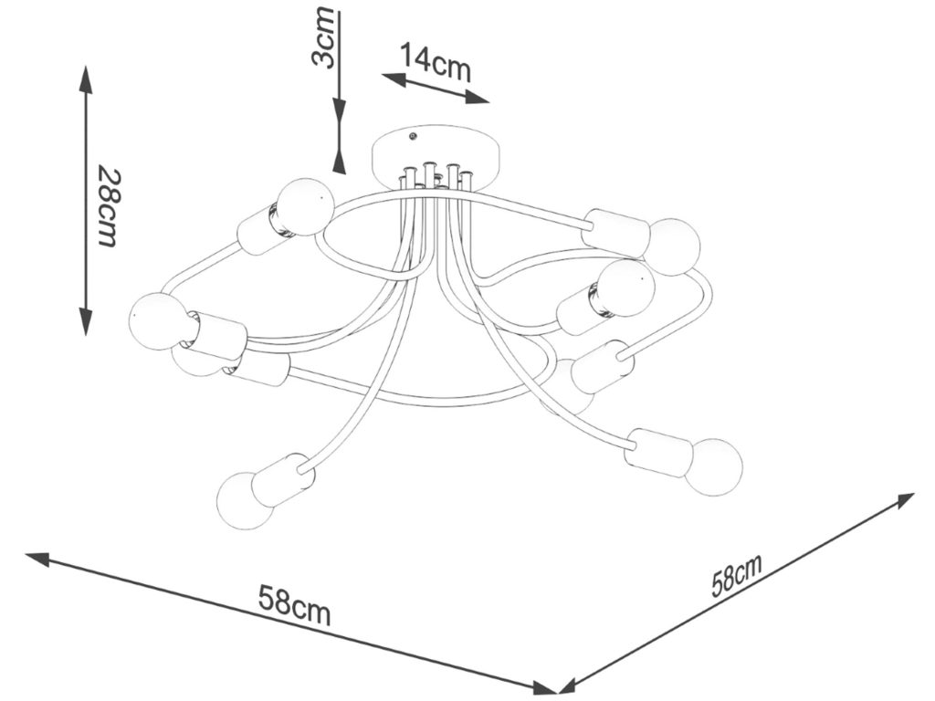 Dzięki wymiarom 58/58/28 cm żyrandol jest kompaktowy, a jednocześnie bardzo funkcjonalny – doskonale sprawdzi się w centralnym punkcie salonu, nad stołem w jadalni czy w przestronnej kuchni. To propozycja dla osób, które szukają stylowego dodatku, a jednocześnie dbają o komfort codziennego użytkowania.