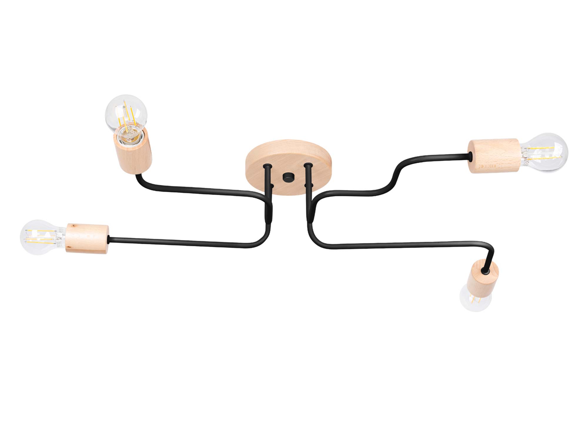 Żyrandol TIMBRA 4 czarny to propozycja dla osób, które chcą połączyć funkcjonalność z unikalnym designem. Czarna stal i naturalne drewno to duet, który nigdy nie wychodzi z mody. Cztery punkty świetlne gwarantują doskonałe oświetlenie, a minimalistyczna forma sprawia, że żyrandol staje się nie tylko źródłem światła, ale także elementem dekoracyjnym.