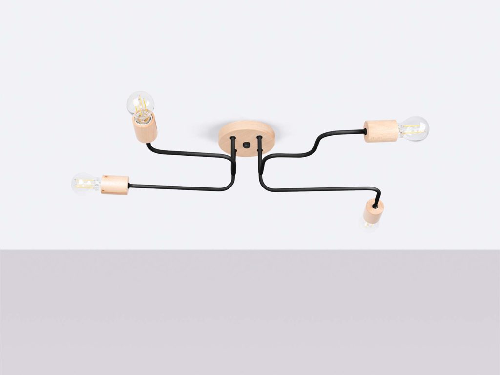 Cztery oprawy na gwint E27 dają możliwość zastosowania różnych żarówek LED, co pozwala na dopasowanie natężenia i barwy światła do indywidualnych potrzeb. Chcesz stworzyć przytulny klimat w salonie? Wybierz żarówki o ciepłej barwie. Potrzebujesz mocniejszego światła do jadalni lub biura? Postaw na neutralne lub chłodne światło LED. Ten model daje Ci pełną swobodę.