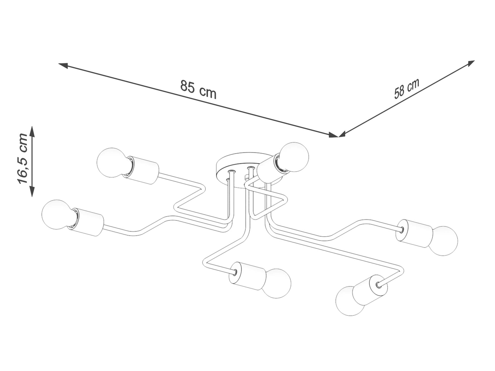 Konstrukcja lampy została zaprojektowana tak, by nie tylko skutecznie oświetlać przestrzeń, ale również stanowić element dekoracyjny. Sześć opraw na gwint E27 daje szerokie możliwości aranżacyjne – możesz dopasować moc i barwę światła do klimatu, jaki chcesz stworzyć. Ciepłe światło LED nada wnętrzu przytulności, a neutralne lub chłodniejsze żarówki sprawdzą się w kuchni, biurze czy jadalni, gdzie liczy się intensywność oświetlenia.