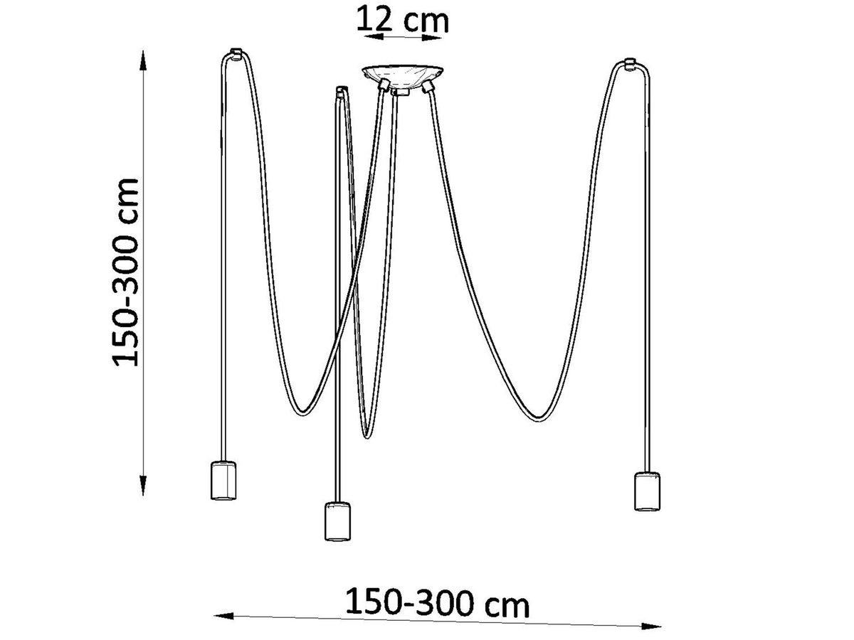 - Wymiary: 300/300/150 cm [max. długość zawiesia 3 m]. Rozmiar żyrandolu pozwala na jego zastosowanie zarówno w dużych, jak i małych przestrzeniach.