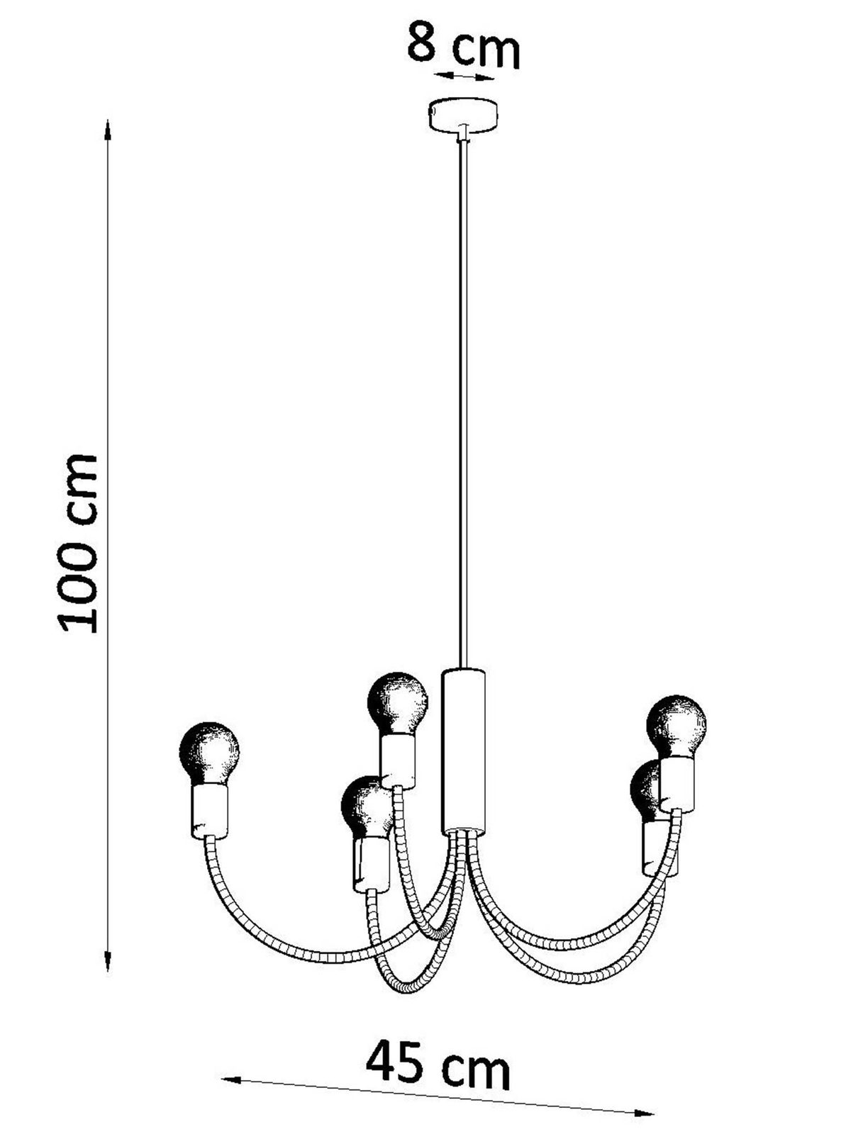 - Wymiary: 45 x 45 x 100 cm – te wymiary sprawiają, że żyrandol idealnie wpasuje się w każde pomieszczenie, bez względu na jego wielkość.
