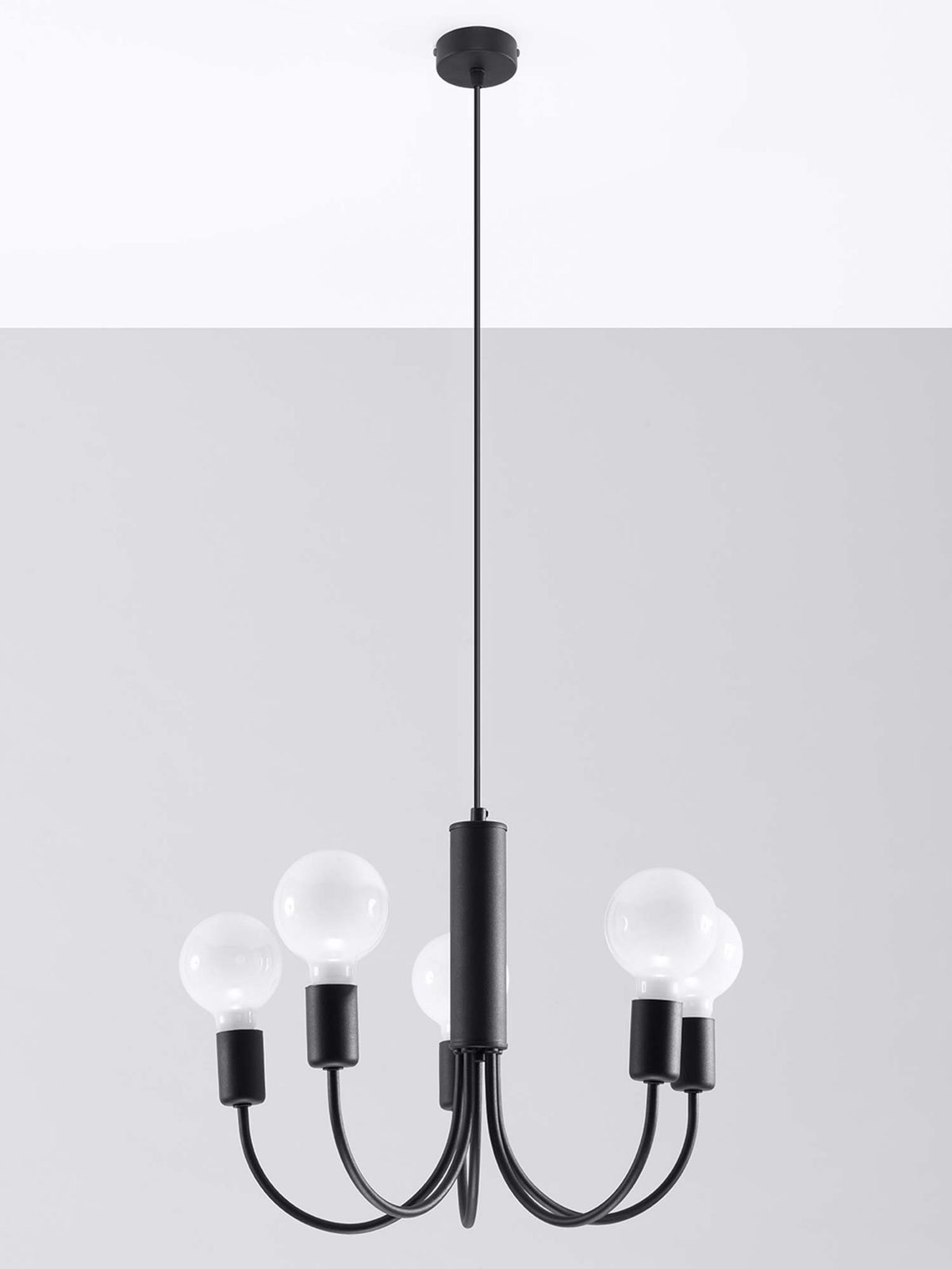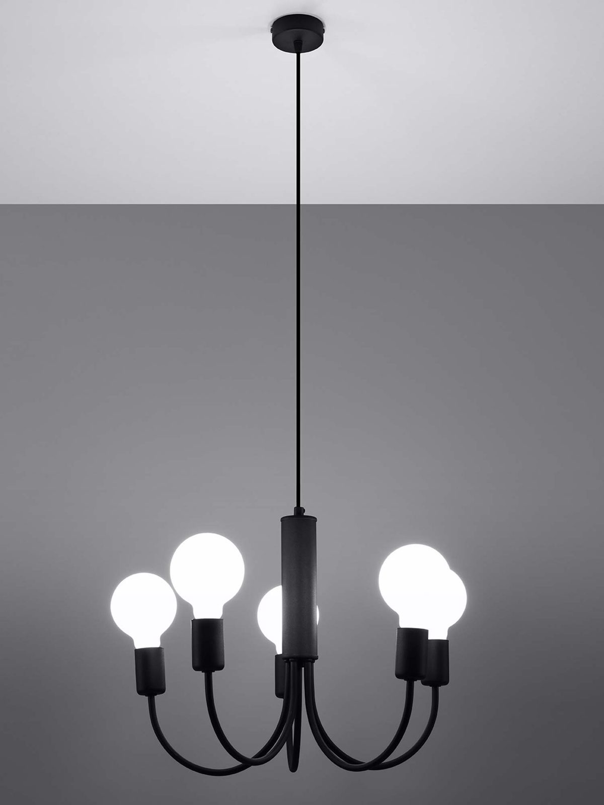 - Kolor: Czarny kolor żyrandola nadaje mu uniwersalności, dzięki której pasuje do każdego wnętrza.