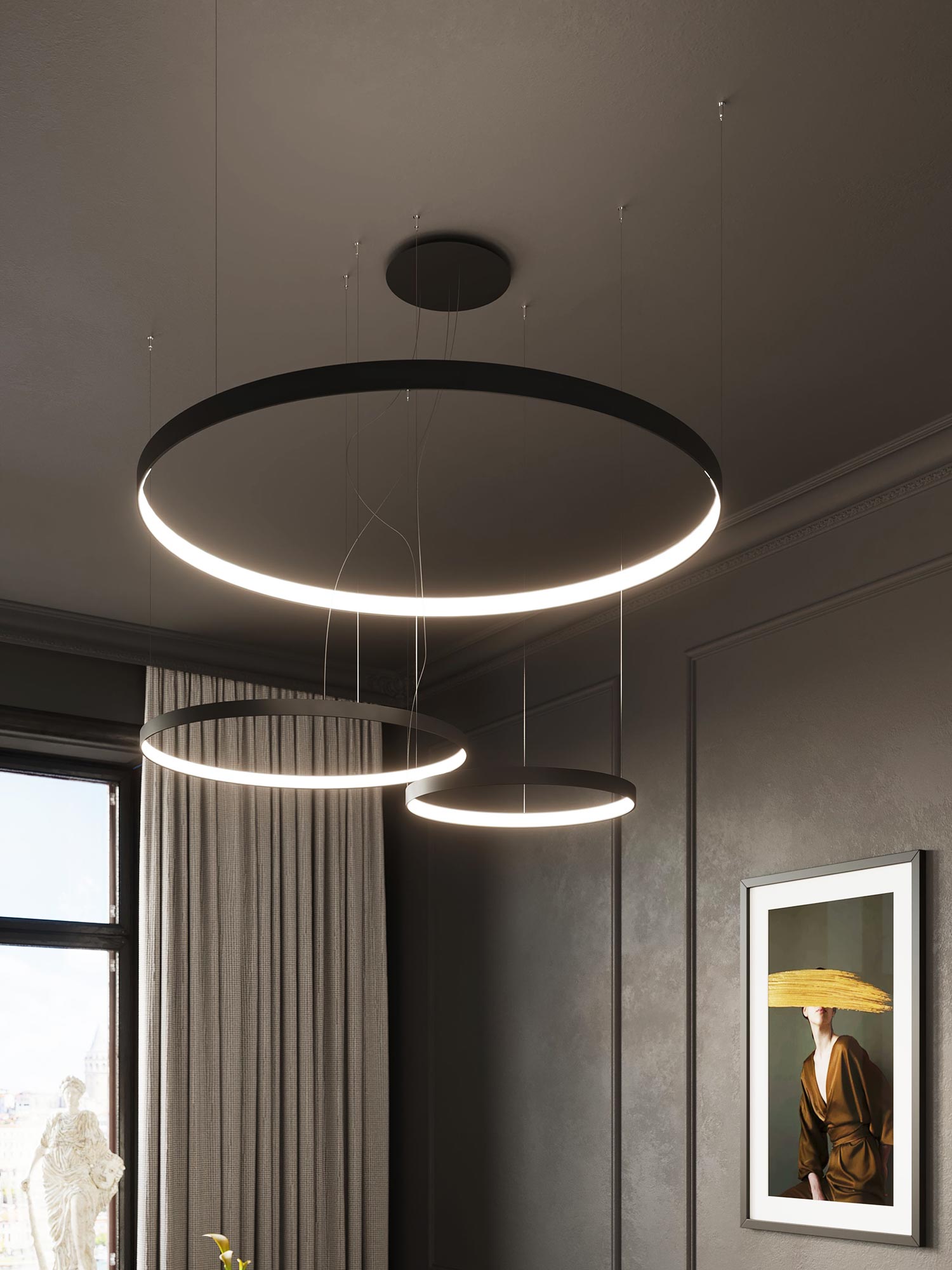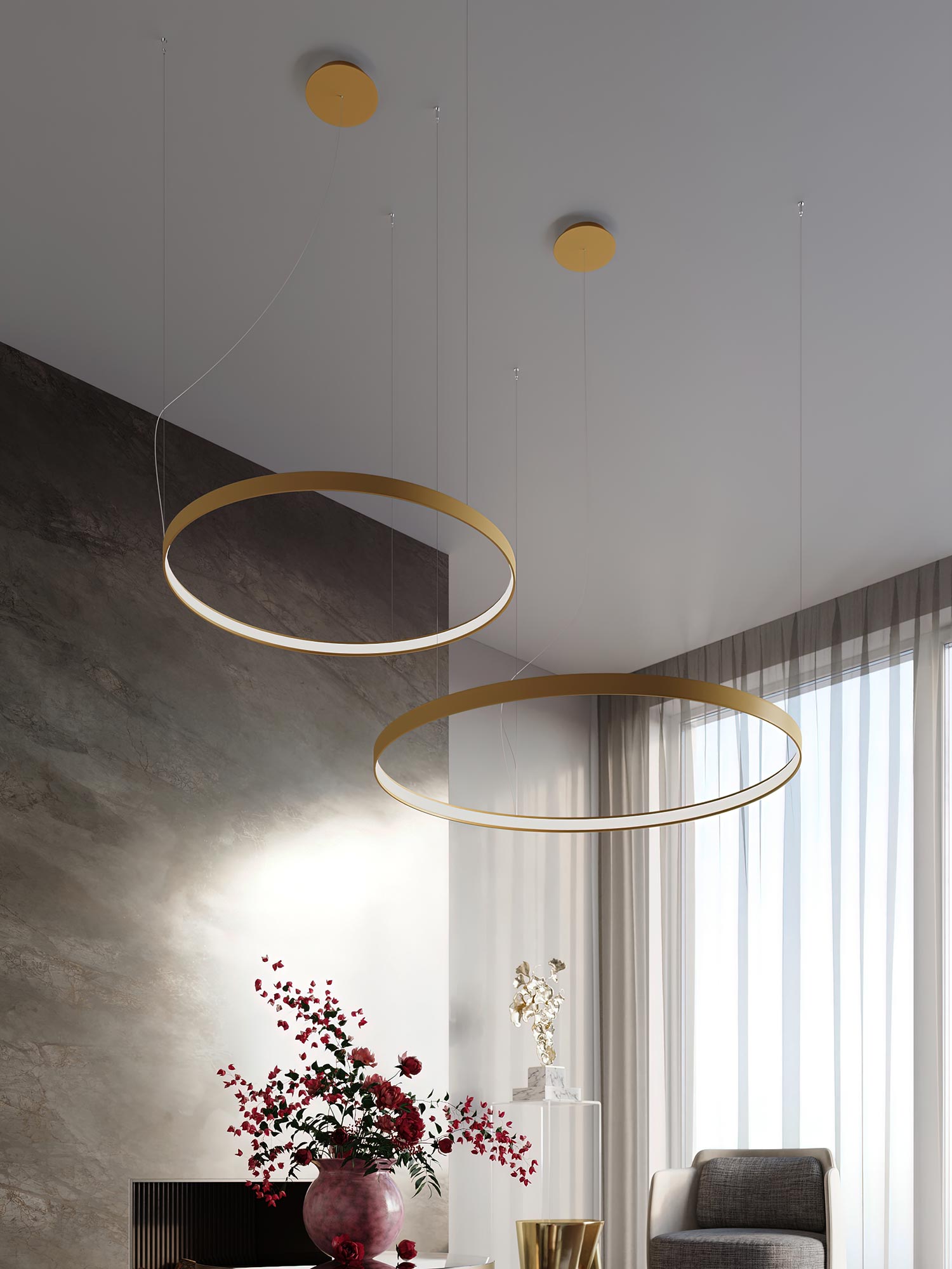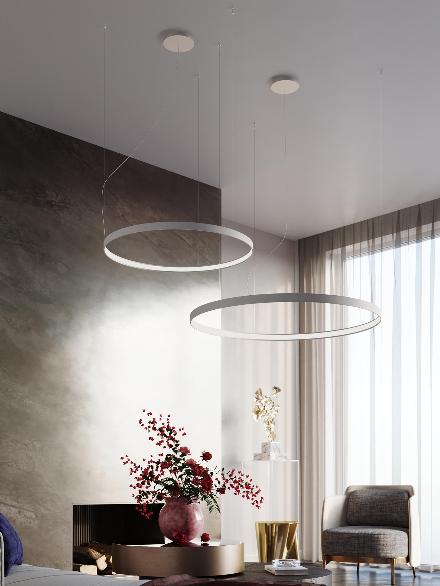 RADIX 110 to żyrandol, który zaskakuje swoją wszechstronnością. Może być montowany jako pojedynczy, podwójny lub potrójny element oświetleniowy, a nawet jako artystyczna, pionowa lampa wisząca, dająca nieskończone możliwości aranżacyjne. Idealnie sprawdzi się zarówno w pomieszczeniach prywatnych, jak i w eleganckich przestrzeniach publicznych.