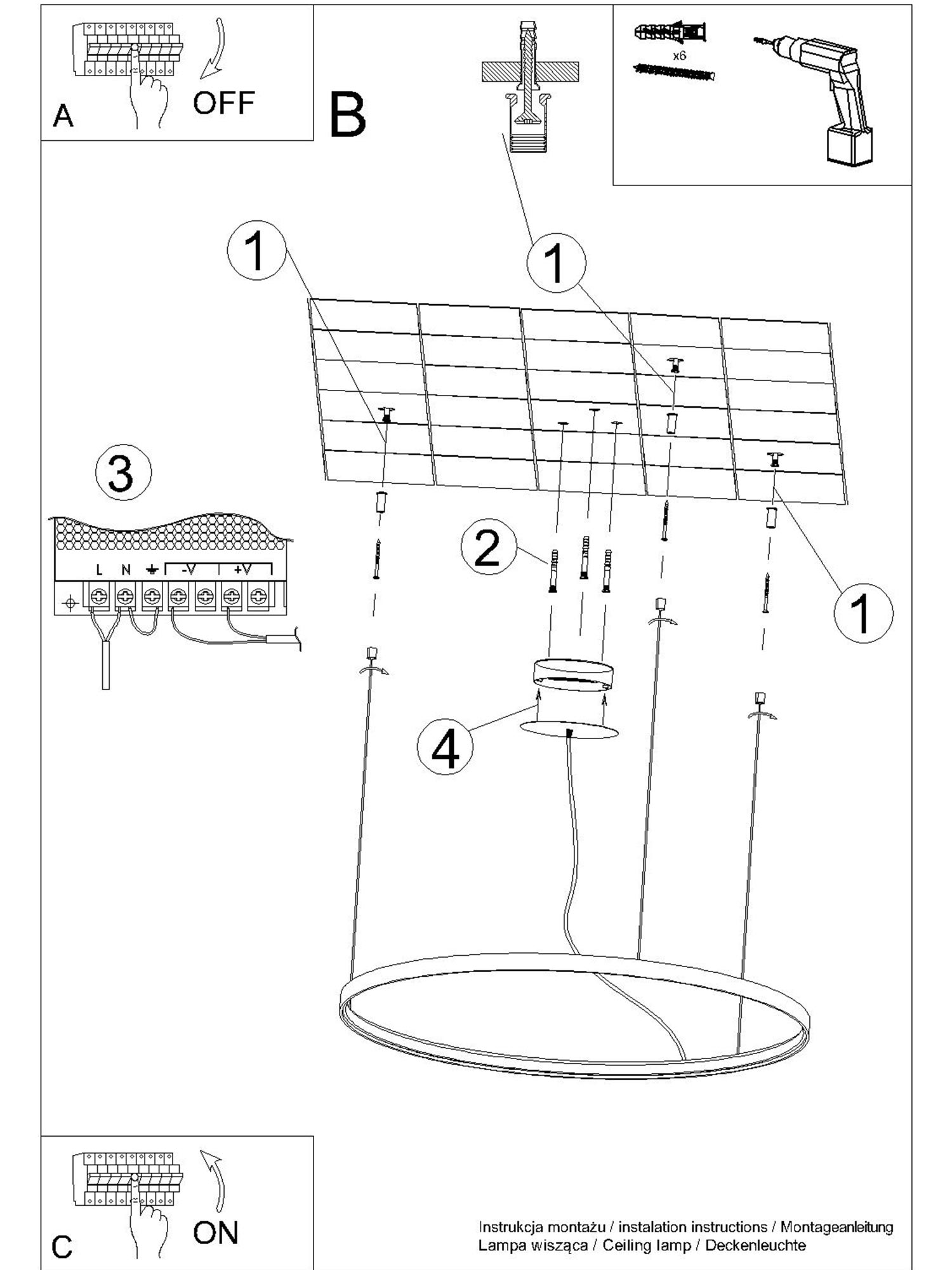• Źródło światła: LED, 70W, 7820lm, 3000K/4000K, CRI90, 50-60Hz, ~220-230V, IP20, klasa ochronności I. Źródło światła jest dołączone do zestawu.