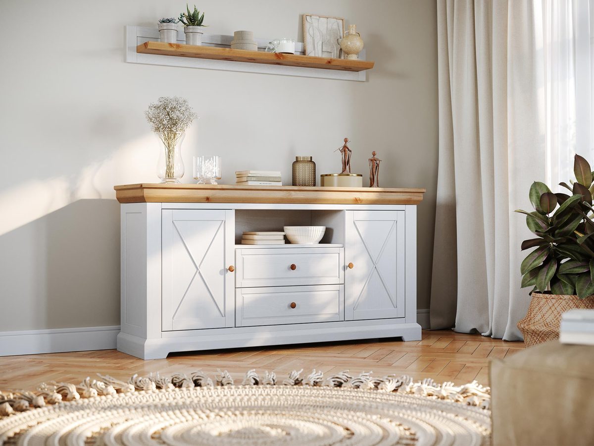 - Elegancki Design: Połączenie białego panelu z blatem w kolorze naturalnej sosny tworzy harmonijną i stylową całość.