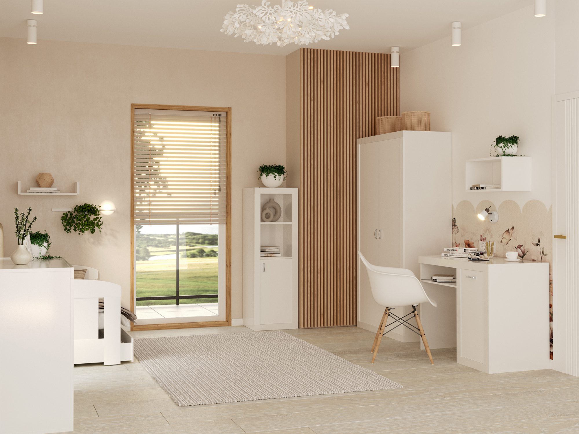Minimalistyczna forma regału Leo idealnie współgra z nowoczesnymi aranżacjami, a jego uniwersalny design sprawia, że doskonale sprawdza się również w salonie, sypialni czy domowym biurze. To mebel, który rośnie wraz z potrzebami – dziś będzie miejscem na książki i zabawki, a w przyszłości na segregatory, dekoracje i osobiste pamiątki.