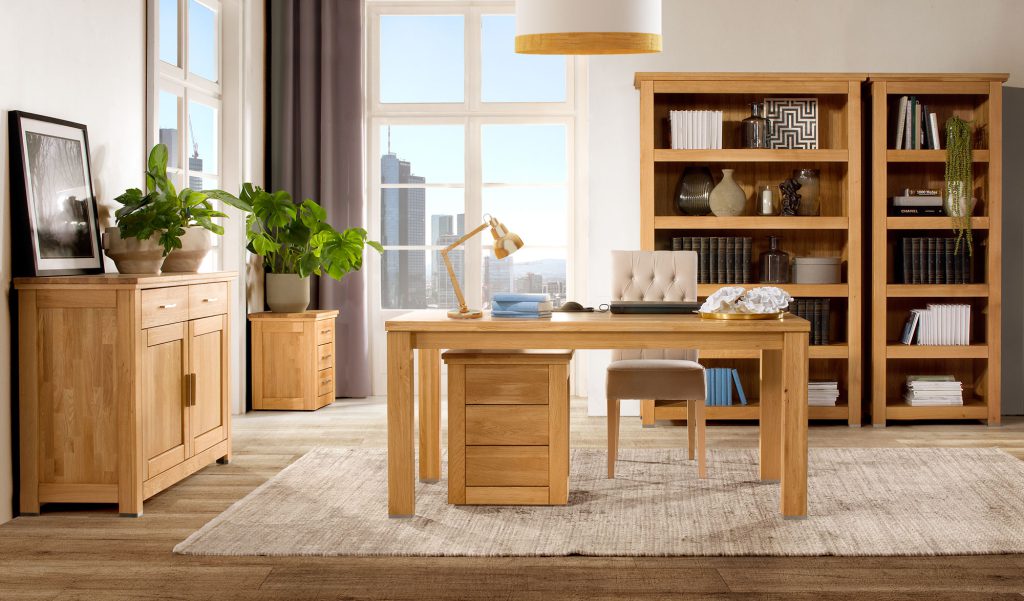 Z wykorzystaniem nowoczesnych i praktycznych mebli dębowych zaaranżujesz swój gabinet, salon, jadalnię, a nawet sypialnię. Ponadto szeroka gama produktów oferowana w naszym sklepie bez problemu zadowoli nawet najbardziej wygórowane oczekiwania. Poza tym nowoczesny styl stworzony z klasycznych surowców stwarza niespotykane połączenie, wskutek którego każdy mebel jest wyjątkowy. Co więcej używane w produkcji lite dębowe drewno posiada swoje jednostkowe cechy, przez co kolor, faktura, linie słojów i sęków są niepowtarzalne.
