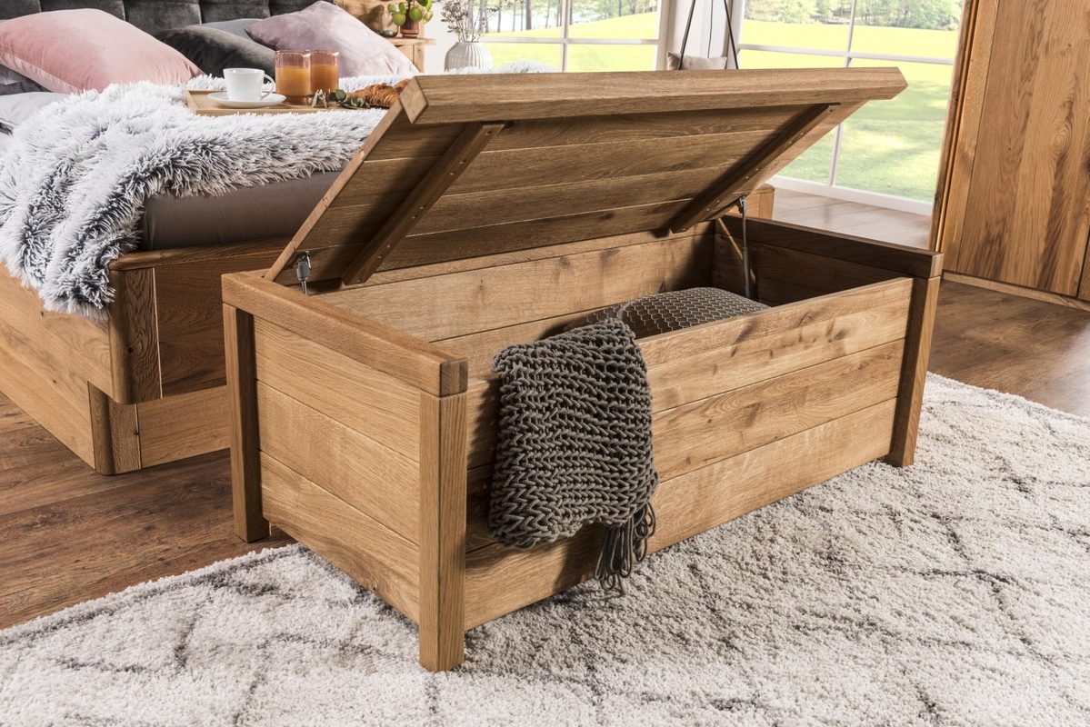 Gustowny i nowomodny kufer Hidos wyprodukowany z najlepszej klasy litego dębu wspaniale wpasuje się w stylizację panującą w każdej sypialni i pokoju dziennym. Mocna konstrukcja oraz gustowne i awangardowe wykończenie sprawią, że skrzynia dębowa szykownie upiększy niejedno pomieszczenie. Box posiada funkcjonalną klapę, do której dołączona jest też poduszka w kolorze czarnym. Dzięki temu skrzynia może zmienić się w wygodne siedzisko.