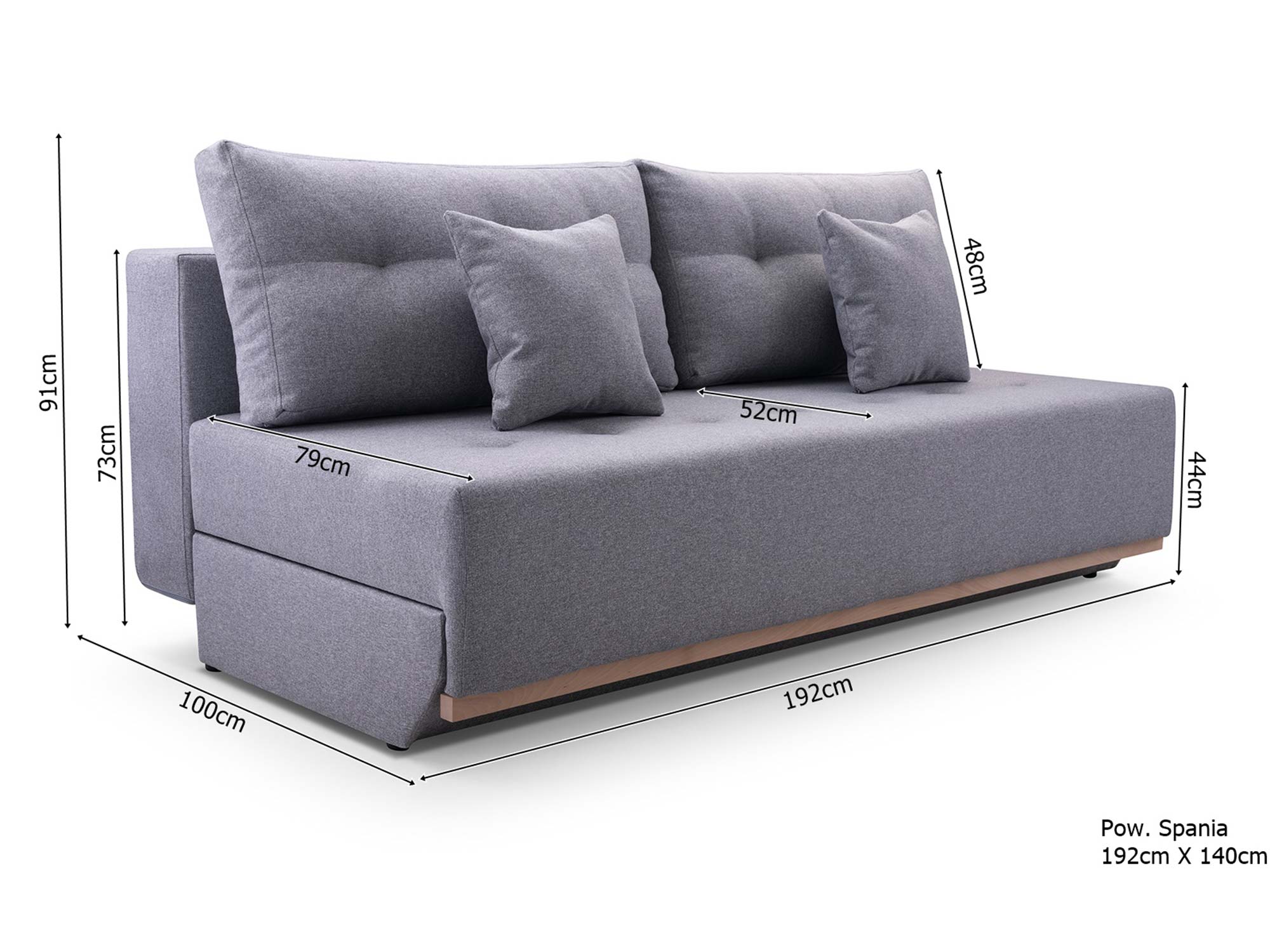 • Funkcja spania – sofa szybko zamienia się w pełnowymiarowe łóżko.