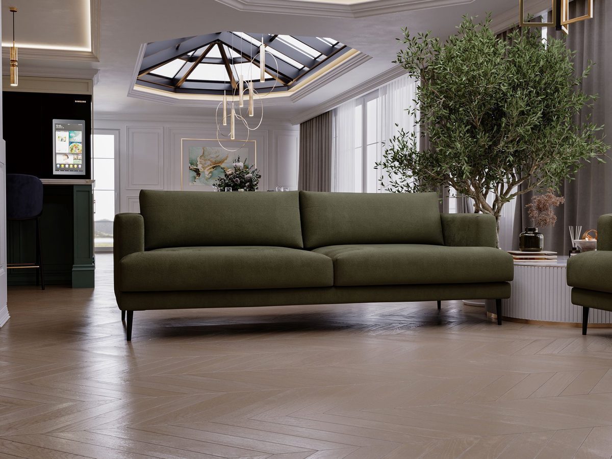 Wyjątkowym atutem tej sofy jest jej tapicerowany tył, który pozwala na ustawienie jej w dowolnym miejscu salonu – nawet w centrum, gdzie stanie się centralnym punktem przyciągającym uwagę. To mebel, który łączy w sobie funkcjonalność i luksus, oferując komfort i wygodę na najwyższym poziomie.