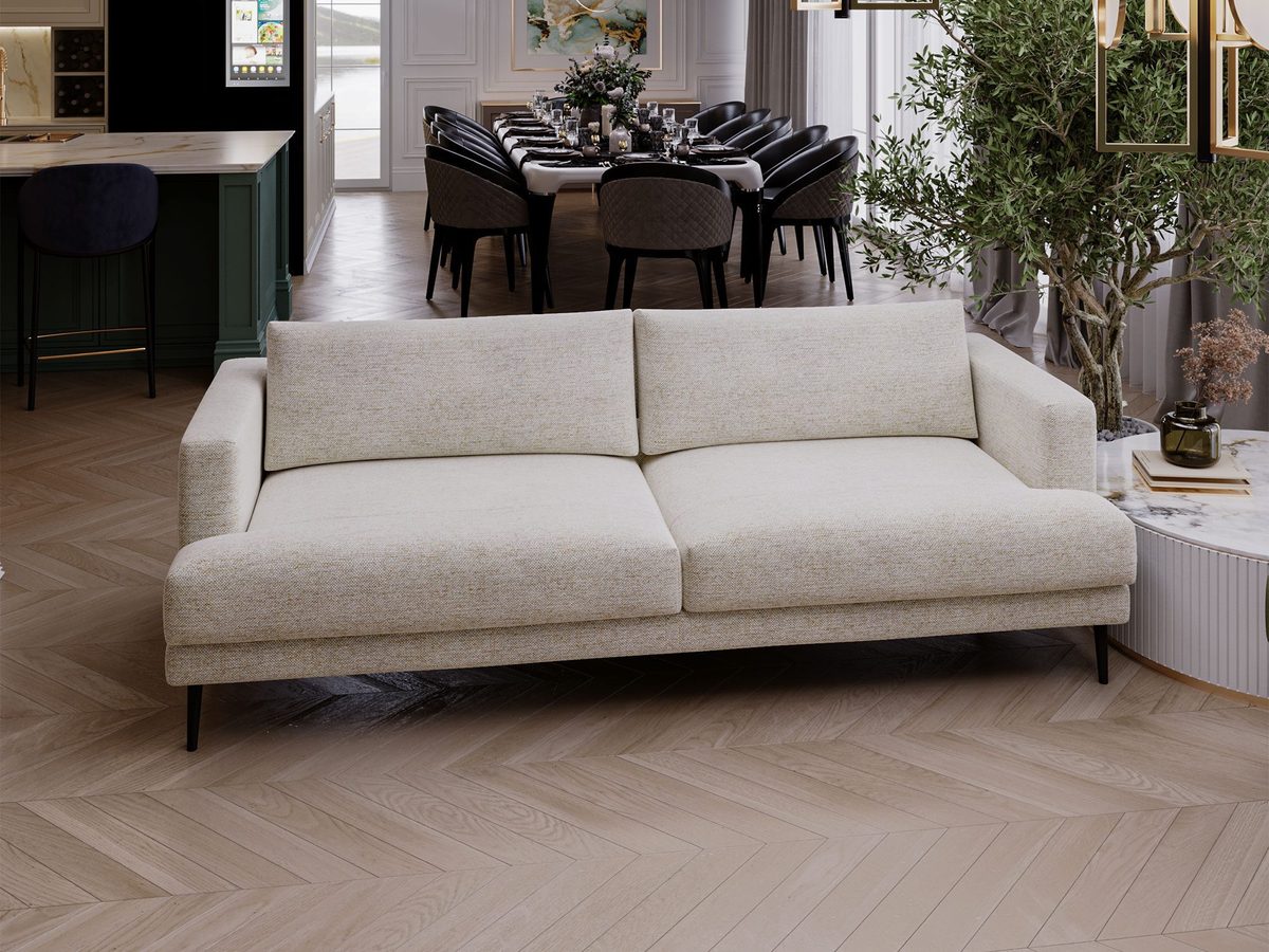 Sofa VINEGRET II to doskonałe połączenie skandynawskiego minimalizmu z glamour i nowoczesnym stylem. Czarne plastikowe nóżki nadają jej lekkości i podkreślają elegancki wygląd, a starannie dopracowane detale dodają sofie designerskiego charakteru. Jej delikatna, ale solidna konstrukcja pozwala cieszyć się luksusem i wygodą każdego dnia.