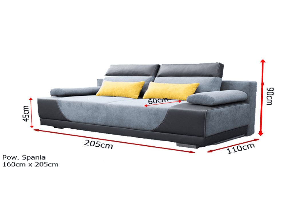 Przede wszystkim prezentowana sofa wyposażona w drewniany stelaż, który gwarantuje stabilność oraz trwałość mebla. Ponadto ciekawym detalem dodającym temu meblowi stylu są nóżki w kolorze chromu. Co więcej na siedzisku i oparciu zastosowywano wypełnienie ze sprężyny falistej oraz pianki T-30. Model CELESTE posiada funkcję spania – jest to mebel rozkładany, pod którego siedziskiem dostępny jest przestronny pojemnik na pościel. Mebel nie tylko zachwyci oferowaną praktycznością codziennego użytkowania, ale również estetycznym designem.
