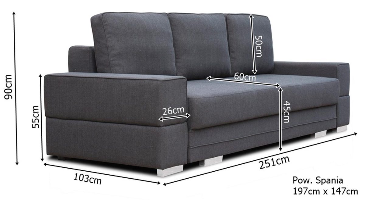 Co najważniejsze prezentowany rozkładany model sofy wypełniony został sprężynami falistymi, a także pianką T-30. Ponadto mebel posiada Drewniany stelaż mebla zapewnia trwałość i odpowiednią solidność konstrukcji, której dopełnieniem są chromowane nóżki. Wolnostojąca sofa ESPERANZA jest tapicerowana tkaniną, której kolorystykę można dobrać do indywidualnych preferencji i do wyglądu aranżowanego pomieszczenia. Dzięki tapicerowanym plecom model ESPERANZA będzie można umieścić zarówno przy ścianie, jak i w środkowej części przestronnego pomieszczenia. Warto pamiętać, że mebel wyposażony jest w pojemnik na pościel, a także posiada funkcję spania. ESPERANZA zapewni bezpieczny i zarazem wygodny wypoczynek.
