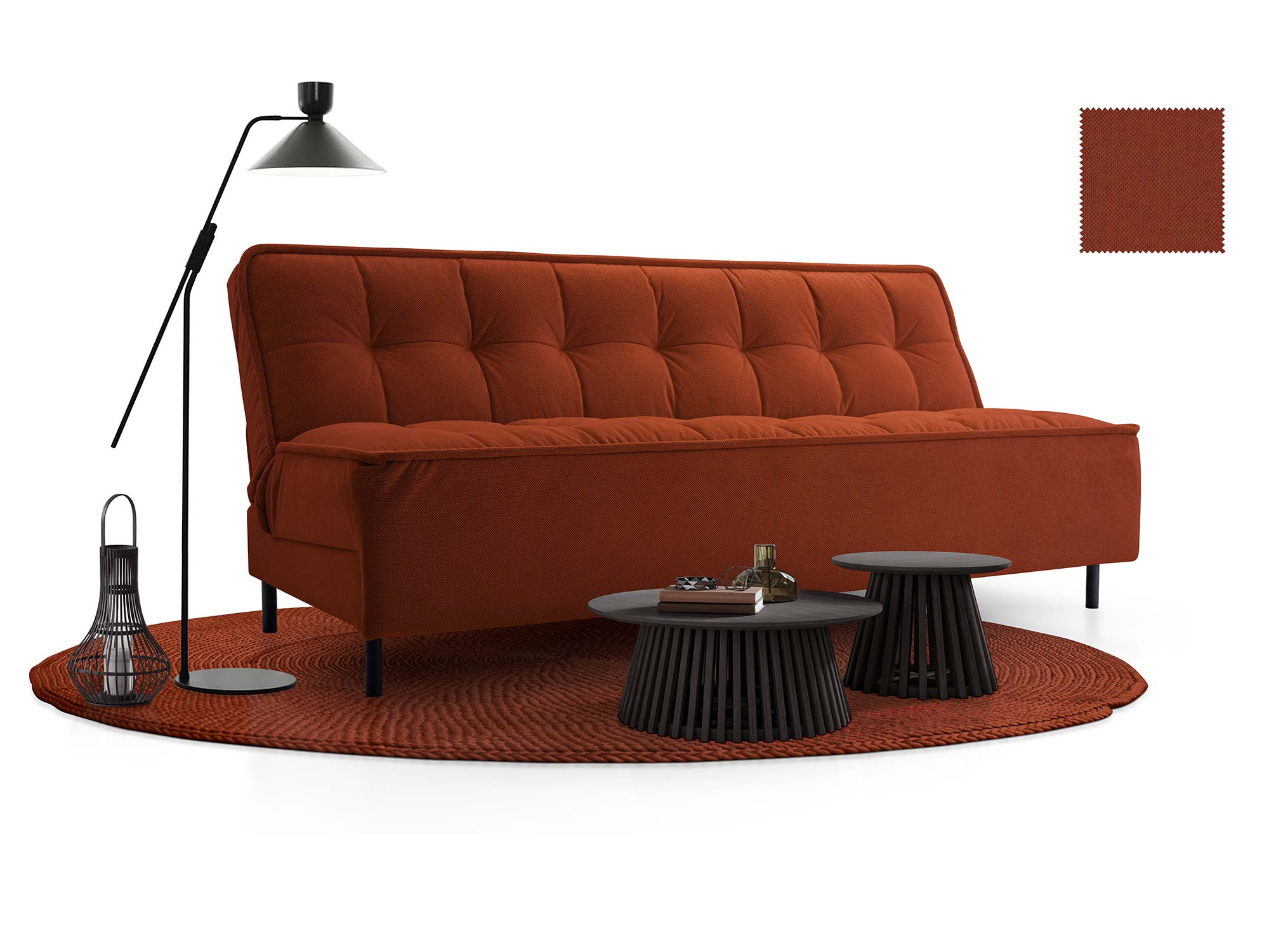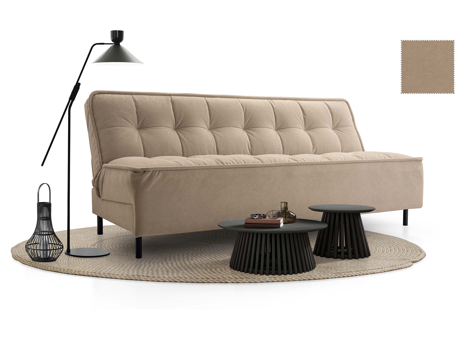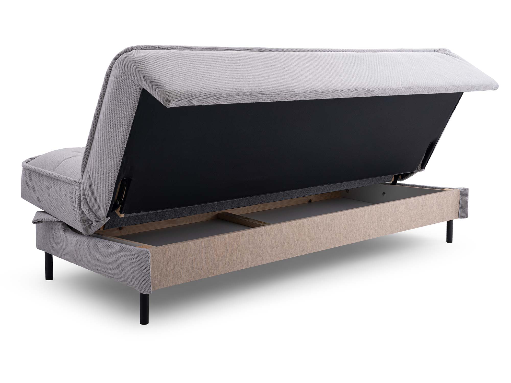 Sofa Senka zachwyca swoim minimalistycznym designem, a jednocześnie oferuje niezwykle wygodną powierzchnię do spania i pojemny schowek na pościel. Dzięki solidnej konstrukcji, wysokiej jakości materiałom oraz łatwemu w obsłudze mechanizmowi click-clack, jest to mebel, który sprosta wymaganiom najbardziej wymagających użytkowników.