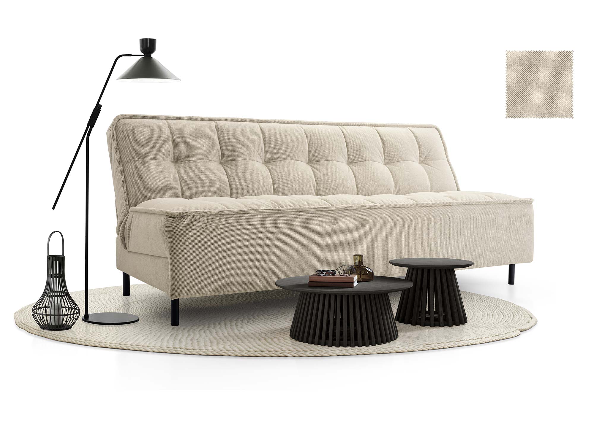 Dzięki mechanizmowi click-clack przekształcenie sofy w łóżko zajmuje zaledwie chwilę. To rozwiązanie, które docenisz szczególnie wtedy, gdy niespodziewanie odwiedzą Cię goście lub gdy potrzebujesz dodatkowego miejsca do spania w codziennym użytkowaniu. Powierzchnia spania o wymiarach 193 × 100 cm sprawia, że sofa doskonale sprawdzi się w roli pełnowartościowego łóżka dla jednej osoby dorosłej lub jako komfortowe rozwiązanie dla pary.