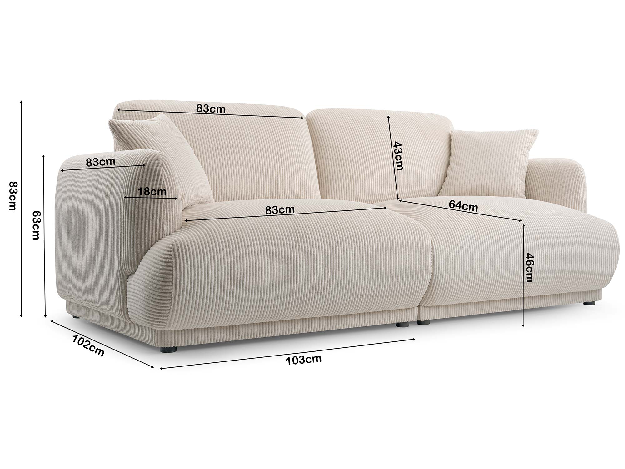 - Brak montażu nóg – sofa gotowa do użytku od razu po ustawieniu.