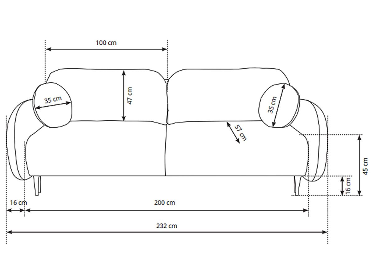 Szerokość: 232 cm / Wysokość: 95 cm /Głębokość: 109 cm /Powierzchnia spania: 140 / 200 cm