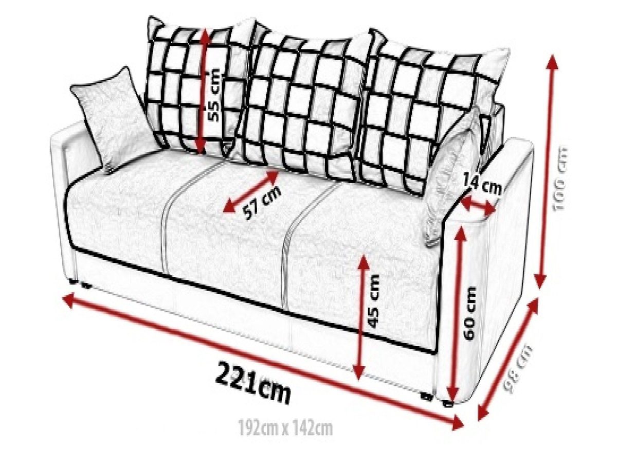 Przede wszystkim siedzisko jak i oparcie sofy wypełniono sprężynami falistymi i pianką, dzięki temu mebel posiada odpowiednią elastyczność i nie ulega odkształceniom. Ponadto sofa posiada w zestawie dekoracyjne poduszki, które stanowią wygodne oparcie.