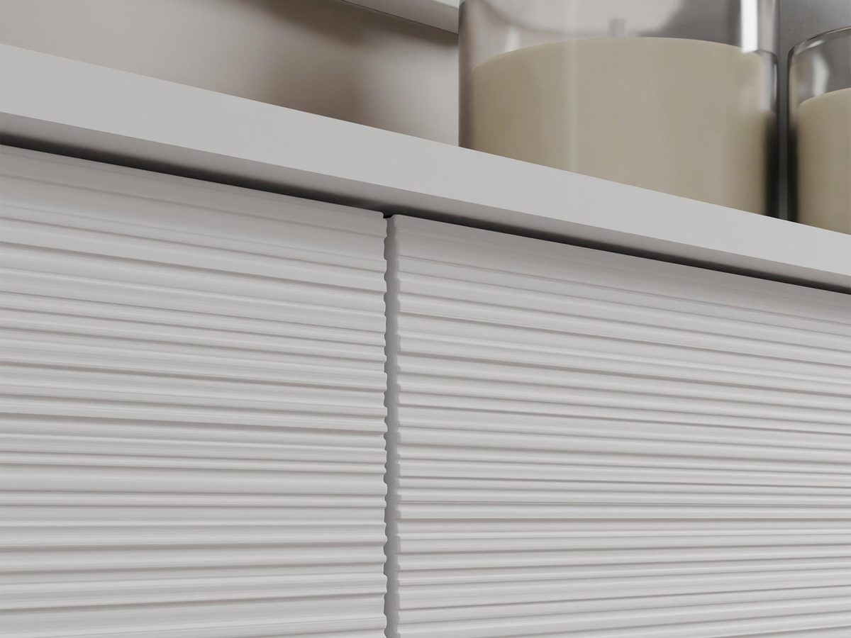 - Fronty wykonane z płyty MDF, drobny nieregularny frez 18mm, ze wzorem poziomych linii.