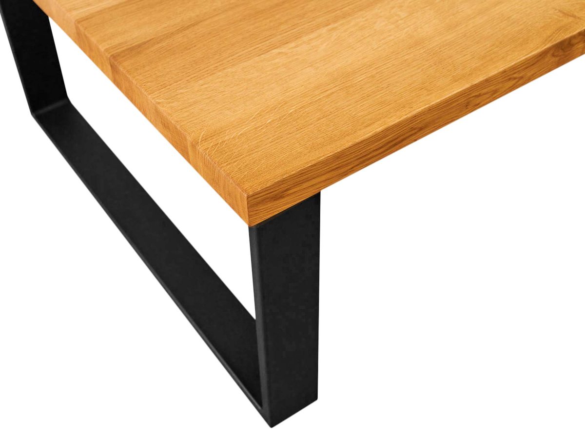 Przede wszystkim wyjątkowy Drewniany stolik kawowy na metalowych nogach FRIDO w industrialnym stylu stanowi modne połączenie dębowego blatu z solidnymi metalowym nogami w kolorze czarnym. Ten wykonany z najwyższą starannością i z najlepszych materiałów mebel to idealne rozwiązanie do wnętrza salonu. Ponadto stolik kawowy powinien być nie tylko praktyczny ale także stanowić ozdobą pomieszczenia, a to zapewnia właśnie stolik FRIDO.
