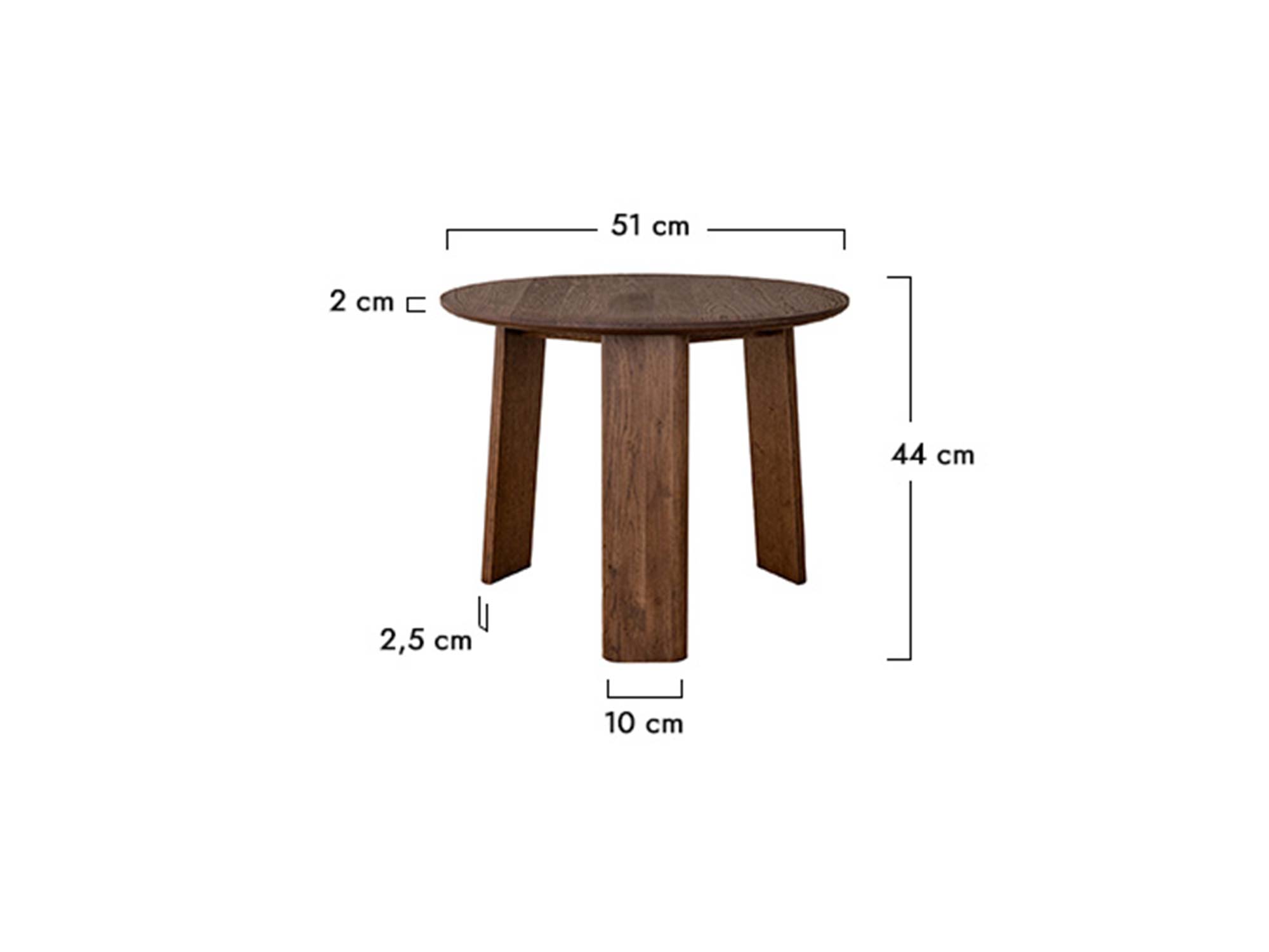 Klasyczny dębowy stolik Asento w kolorze tabacco to mebel, który zachwyca od pierwszego spojrzenia. Jego kompaktowa średnica 51 cm i wysokość 44 cm sprawiają, że doskonale odnajduje się w każdej przestrzeni – od sypialni, przez salon, aż po przytulny kącik do czytania. Głęboki, ciemny odcień drewna nadaje wnętrzu klasy i wyjątkowego klimatu. To stolik, który stanie się nie tylko praktycznym, ale również dekoracyjnym elementem Twojego domu.