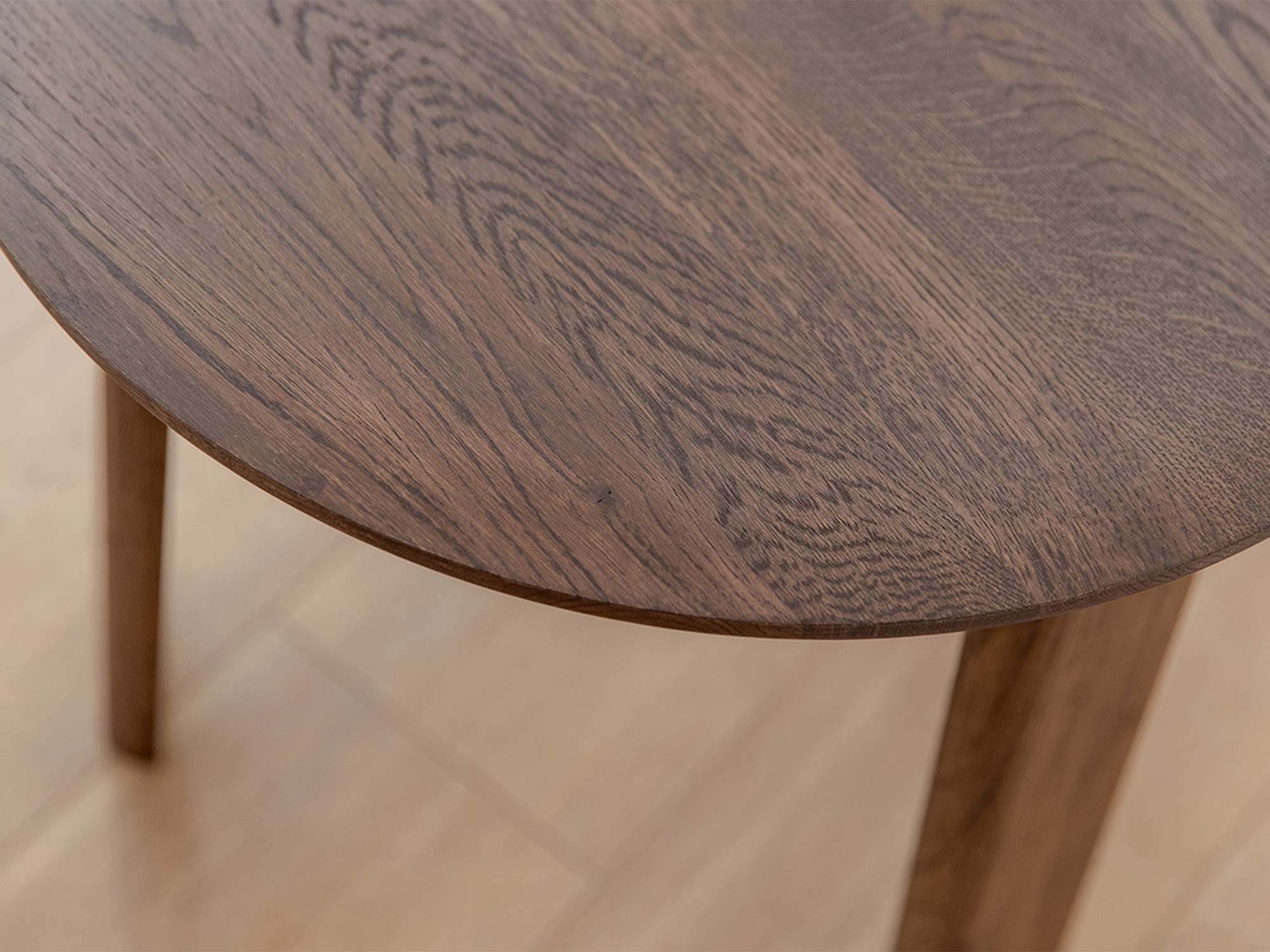 Klasyczny nowoczesny dębowy stolik Asento wyróżnia się nie tylko pięknym designem, ale przede wszystkim naturalnością materiału. Lite drewno dębowe w kolorze tabacco zachwyca głębią barwy oraz widoczną strukturą słojów, które nadają każdemu egzemplarzowi niepowtarzalny charakter. To mebel, który nie potrzebuje dodatkowych zdobień – jego siła tkwi w prostocie i naturalnej elegancji.