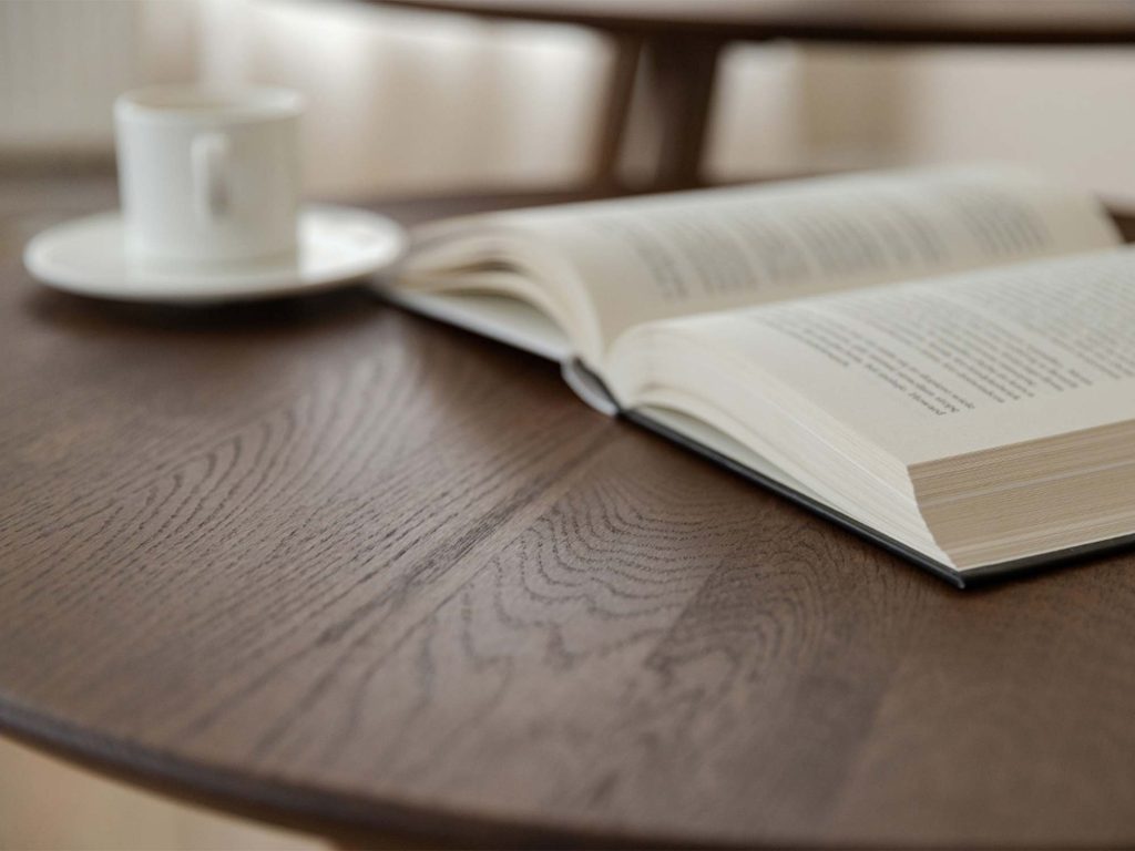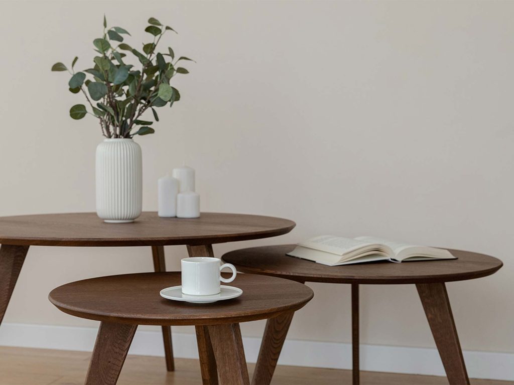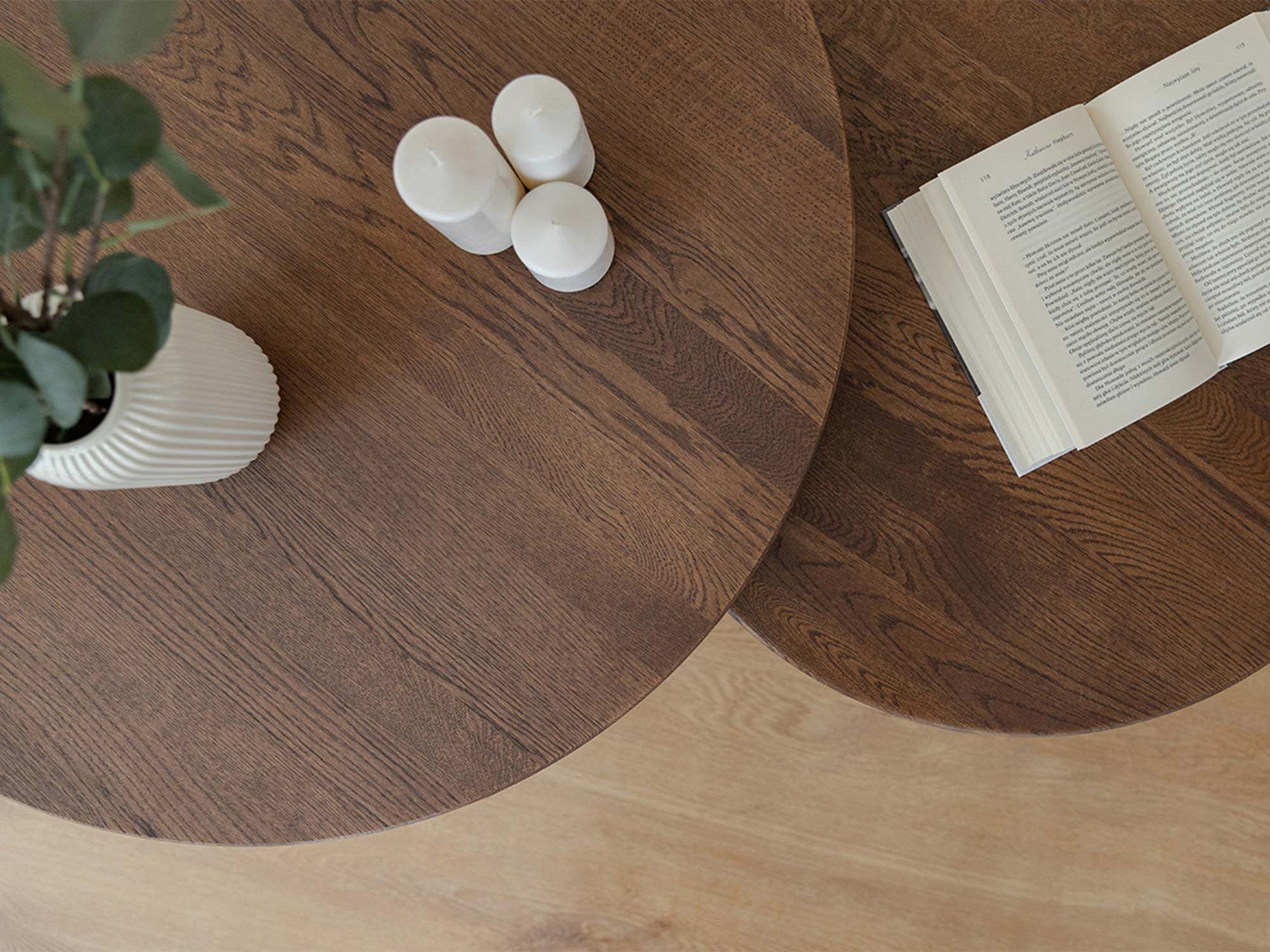 Okrągła forma ma w sobie coś wyjątkowo przyjaznego: sprzyja rozmowie, płynnie komponuje się z miękkimi liniami sof i narożników, a przy tym pozwala maksymalnie wykorzystać przestrzeń – zwłaszcza w mniejszych pokojach. Stolik dębowy Basic o średnicy 70 cm doskonale wpisuje się w różne stylistyki: od nowoczesnego minimalizmu i scandi, po cieplejszy classic modern czy rustykalne inspiracje. Jego głęboki, ciemny odcień tabacco pięknie współgra z beżami, szarościami i zgaszonymi zielenami, ale równie efektownie kontrastuje z bielą i naturalnymi tkaninami.