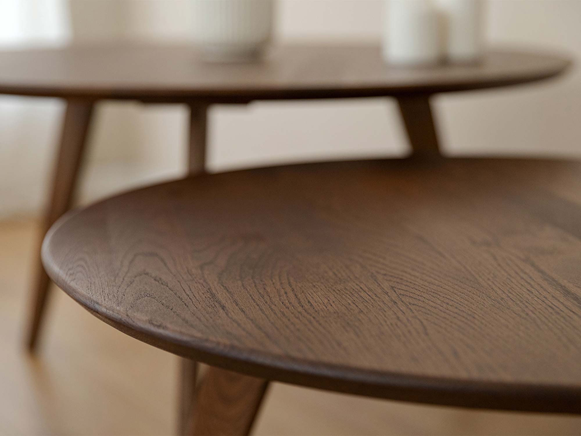 Klasyczny dębowy nowoczesny stolik Basic to przemyślana inwestycja w jakość, funkcjonalność i estetykę. Okrągły blat 70 cm, naturalny dąb i olejowane wykończenie tworzą połączenie, które nie tylko dobrze wygląda, ale też ułatwia codzienne życie – od porannej kawy po wieczorne chwile z książką. Wnieś do swojego wnętrza ciepło i autentyczność naturalnego drewna, zachowując czysty, nowoczesny charakter.