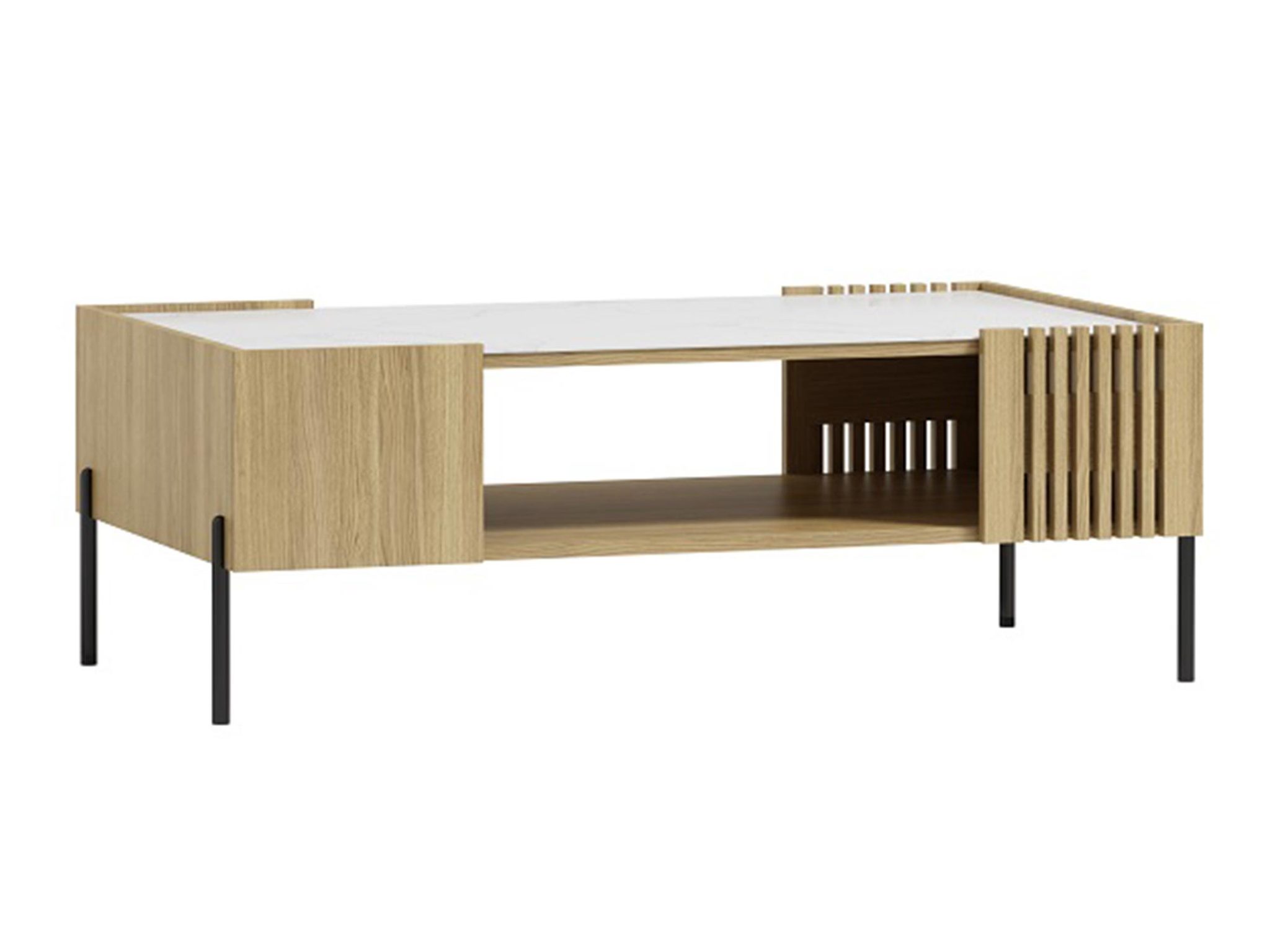 Proste kształty i dekoracyjne lamele podkreślają elegancki, ale prosty design ławy. Jej minimalistyczny design sprawia, że doskonale wpasowuje się w każde wnętrze, nie dominując przestrzeni, lecz subtelnie ją uzupełniając. To mebel, który łączy w sobie nowoczesność z klasycznym pięknem, tworząc harmonijną całość.