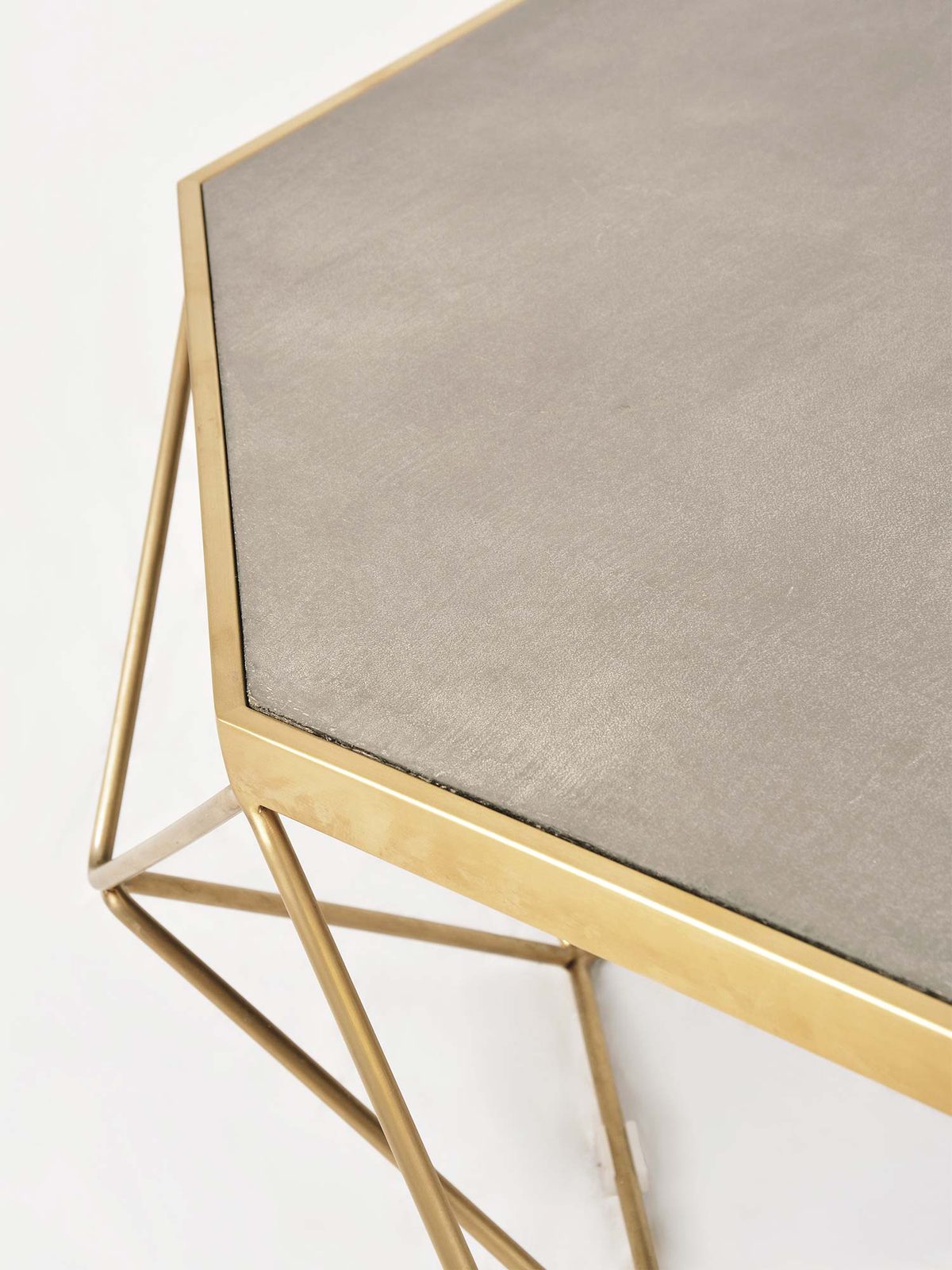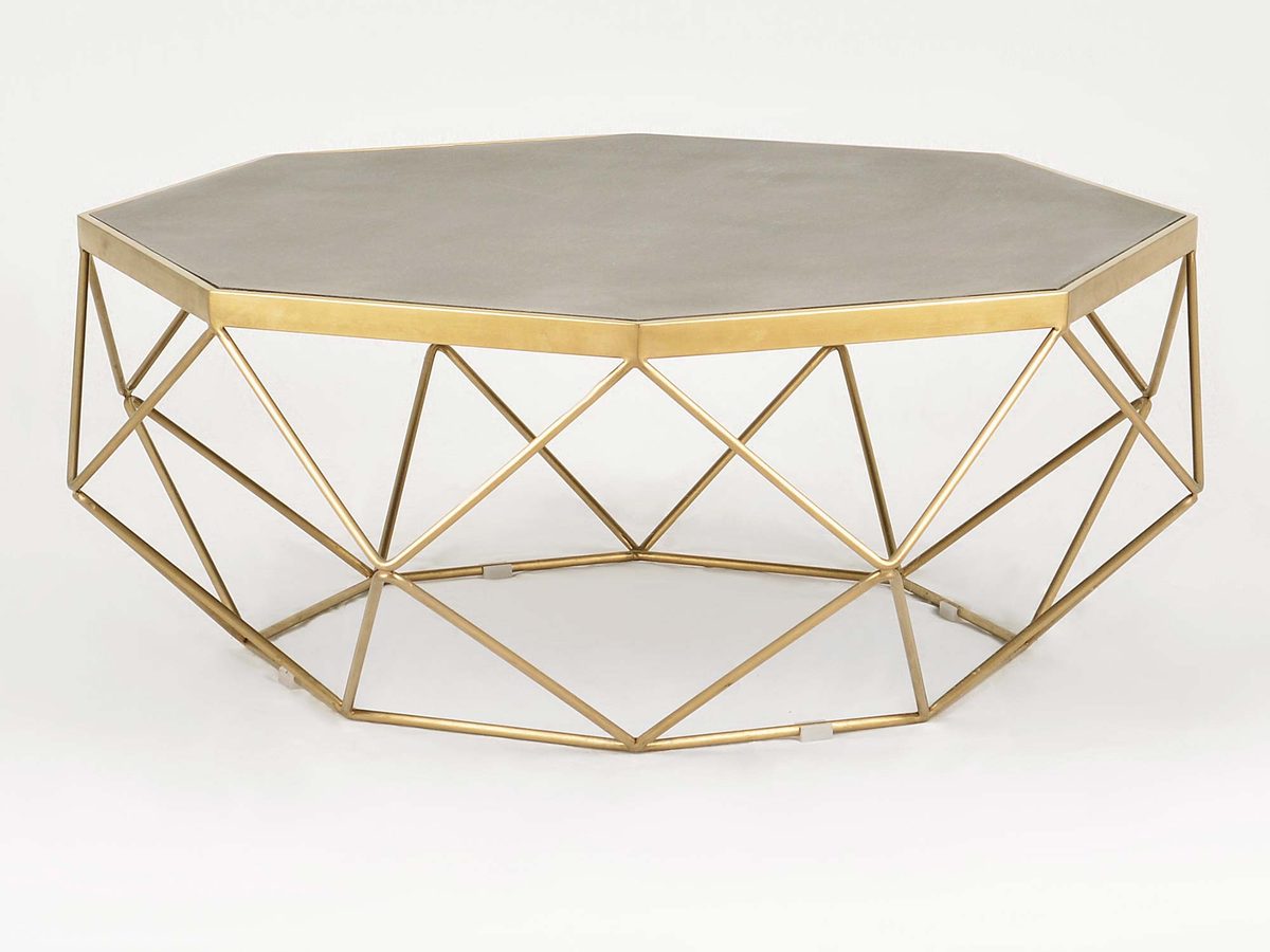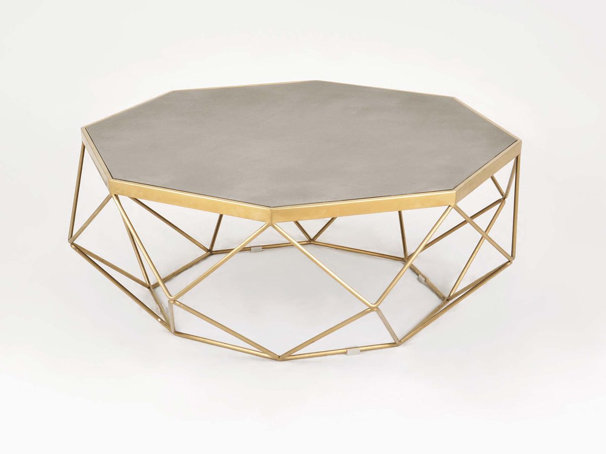 Stolik Kawowy W Stylu Glamour Z Geometryczną Ramą I Cementowym Blatem – Luxe