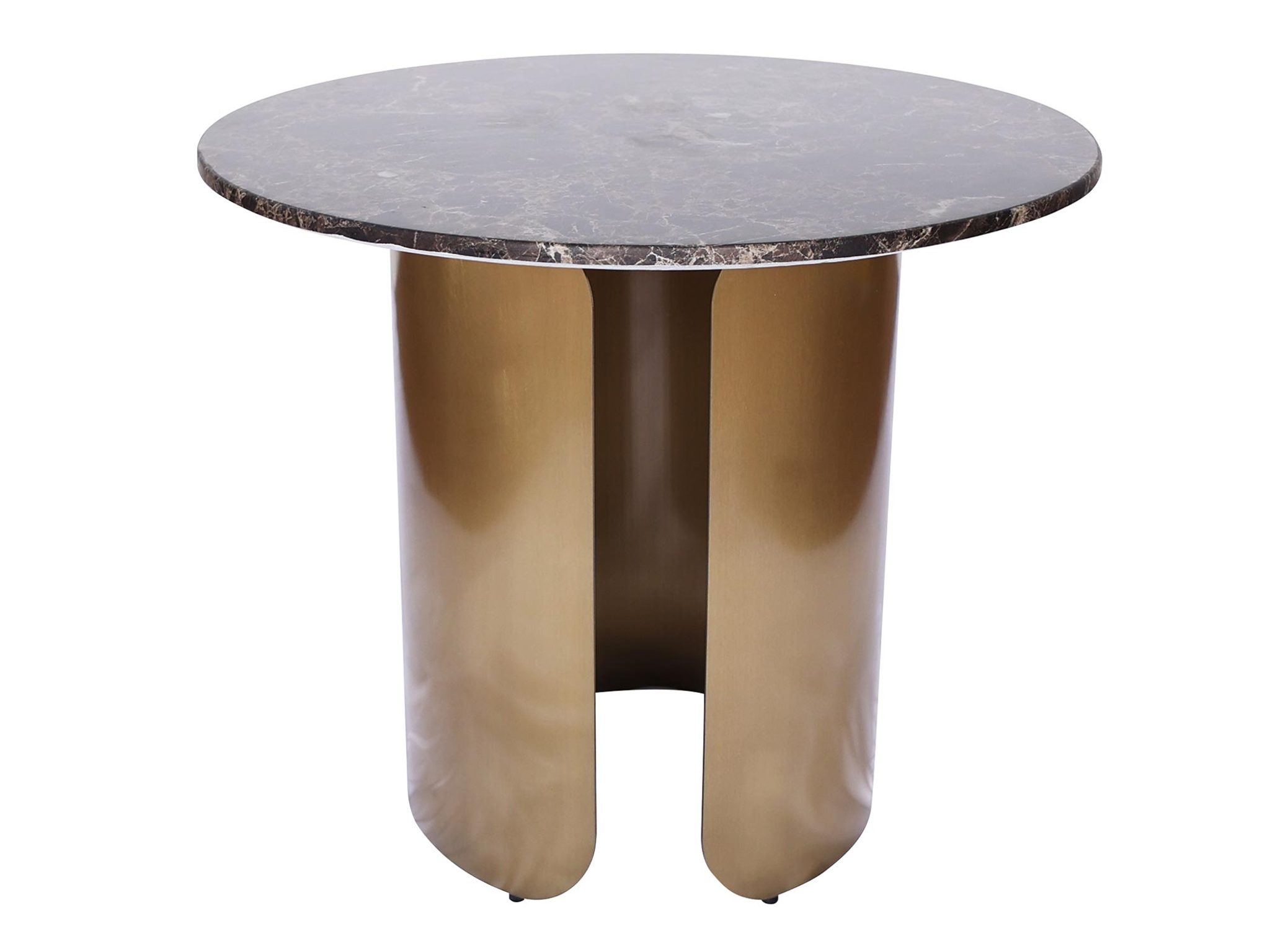 Stolik Okrągły Z Brązowym Blatem I Złotymi Nogami W Formie Tafli – Virtus