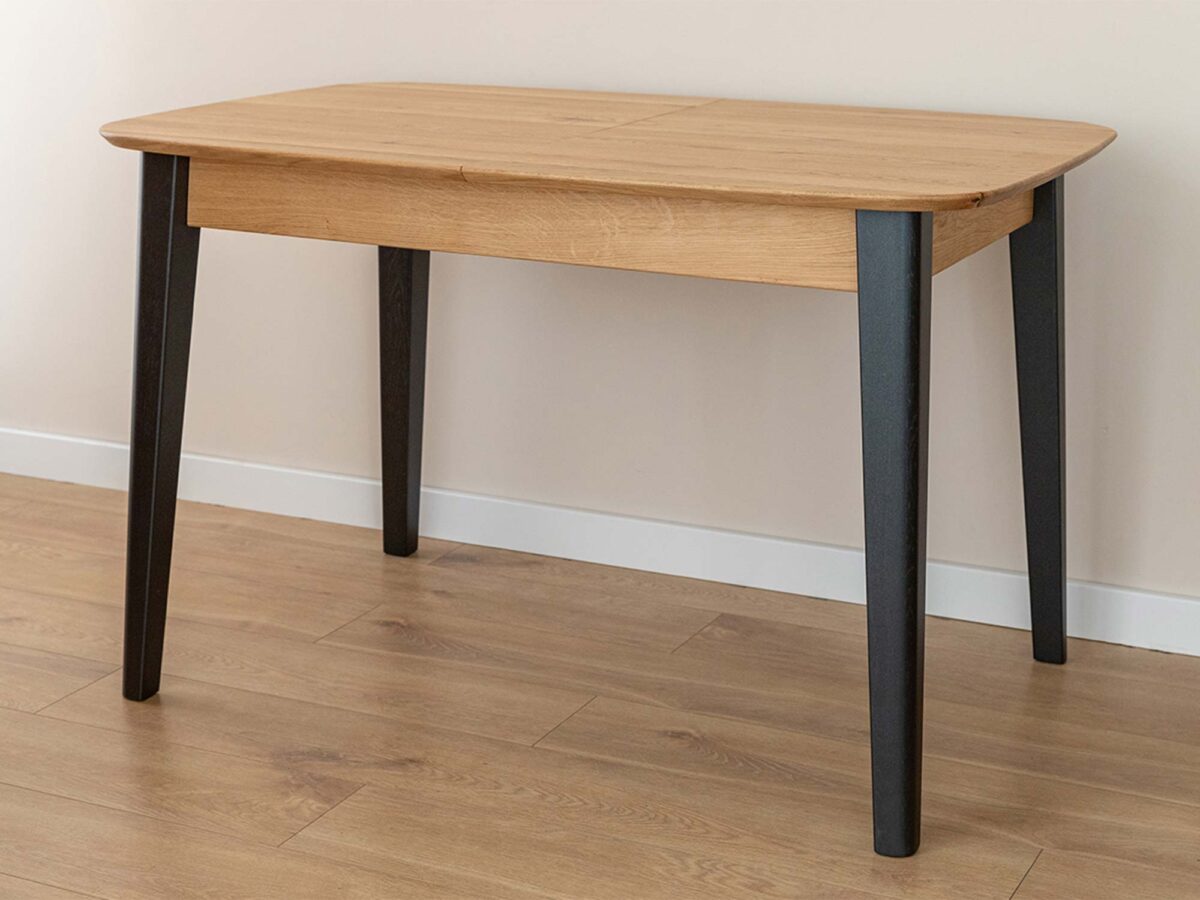 Stół rozkładany prostokątny 120 cm z czarnymi nogami – dębowy Basic łączy to, co w nowoczesnym wnętrzu liczy się najbardziej: czystą formę, funkcjonalność i ciepło naturalnego materiału. Dębowy, olejowany blat ma w sobie miękkość i przytulność, które od razu zachęcają, by usiąść. Smukłe czarne nogi nadają całości współczesnego charakteru i wizualnej lekkości. Na co dzień kompaktowy, a gdy trzeba – rozkłada się do 165 cm, tworząc wygodną przestrzeń na rodzinne obiady i spotkania w większym gronie.