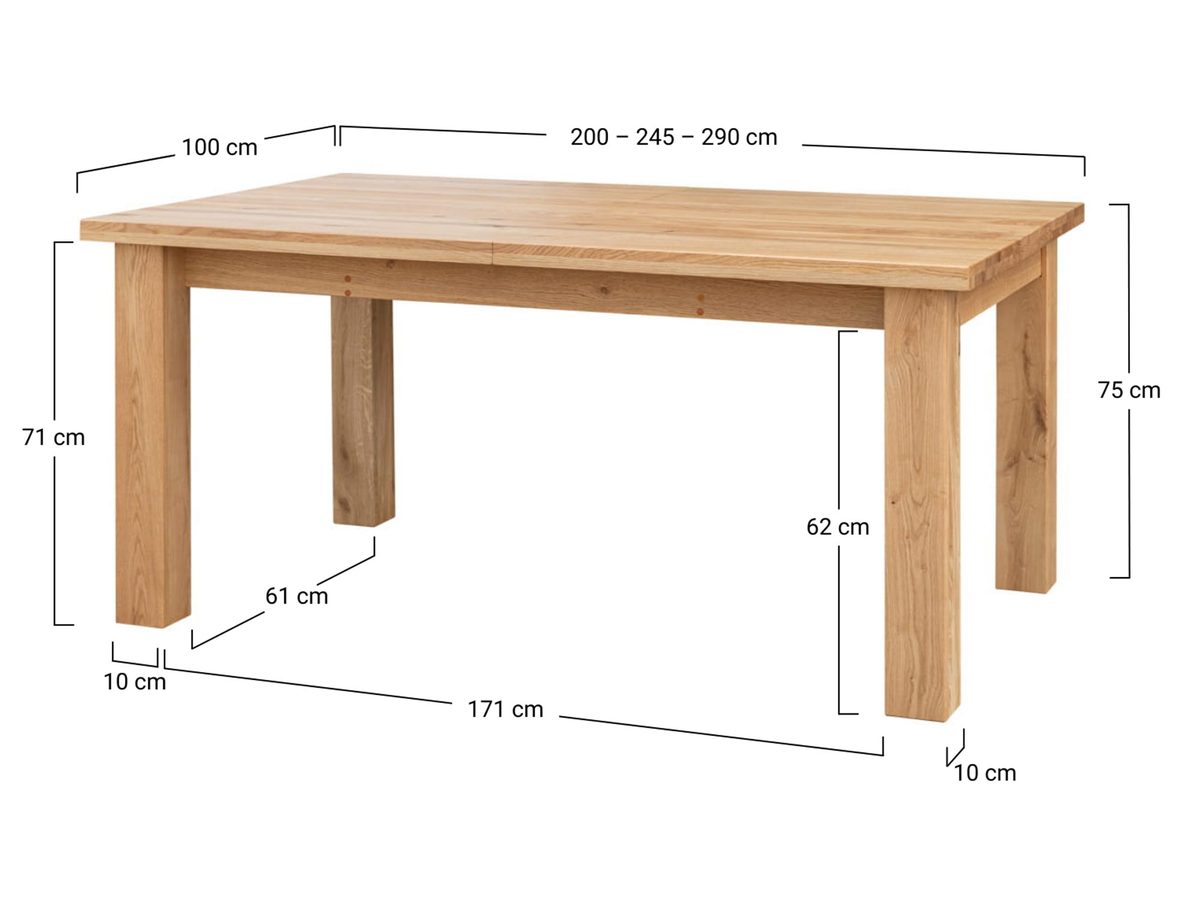 Rozsuwany Dębowy Stół Neri o długości od 200 do 290 cm to elegancki i funkcjonalny mebel, który doskonale sprawdzi się w każdej jadalni. Jego nowoczesny system rozkładania „motyl” umożliwia łatwe i szybkie rozsunięcie stołu w ciągu kilkudziesięciu sekund. Podstawowym elementem tego systemu jest dostawka o szerokości 90 cm, która zwiększa długość blatu, zapewniając dodatkowe miejsce dla gości. Dzięki szerokiemu zastosowaniu stali, mechanizm jest stabilny i trwały, gwarantując płynne i satysfakcjonujące działanie przez wiele lat.