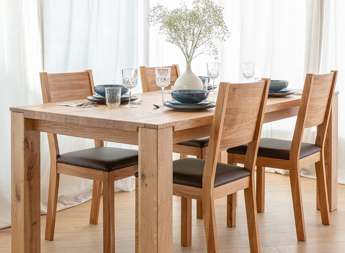 - Naturalne Drewno Dębowe: Olejowany dąb zapewnia wytrzymałość i odporność na uszkodzenia, gwarantując, że stół będzie inwestycją na lata.