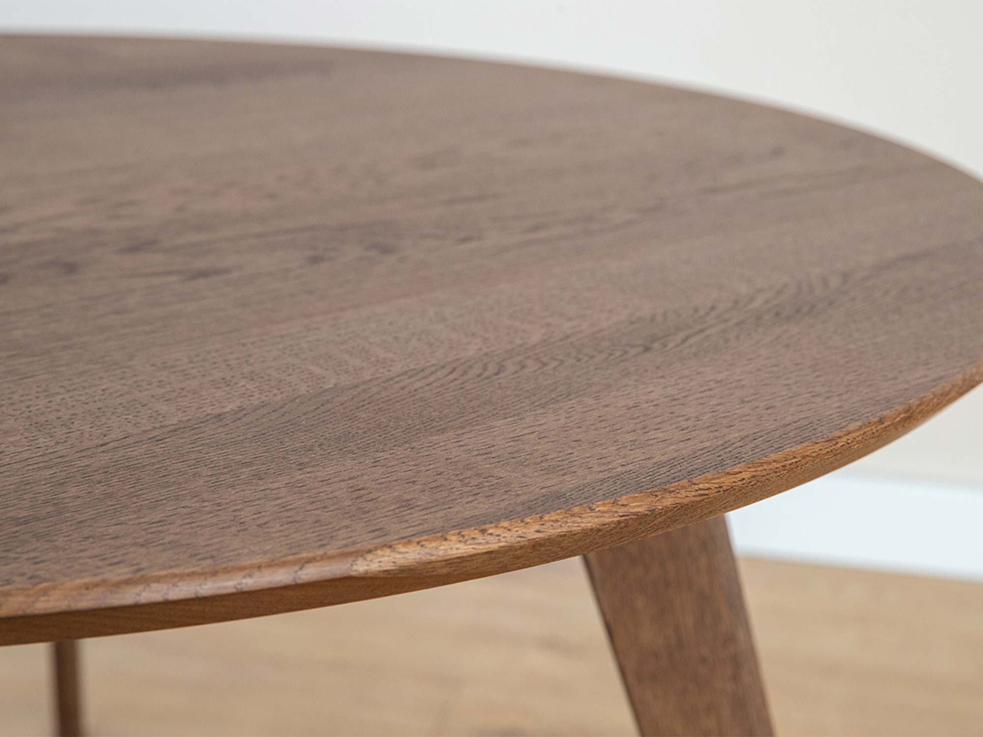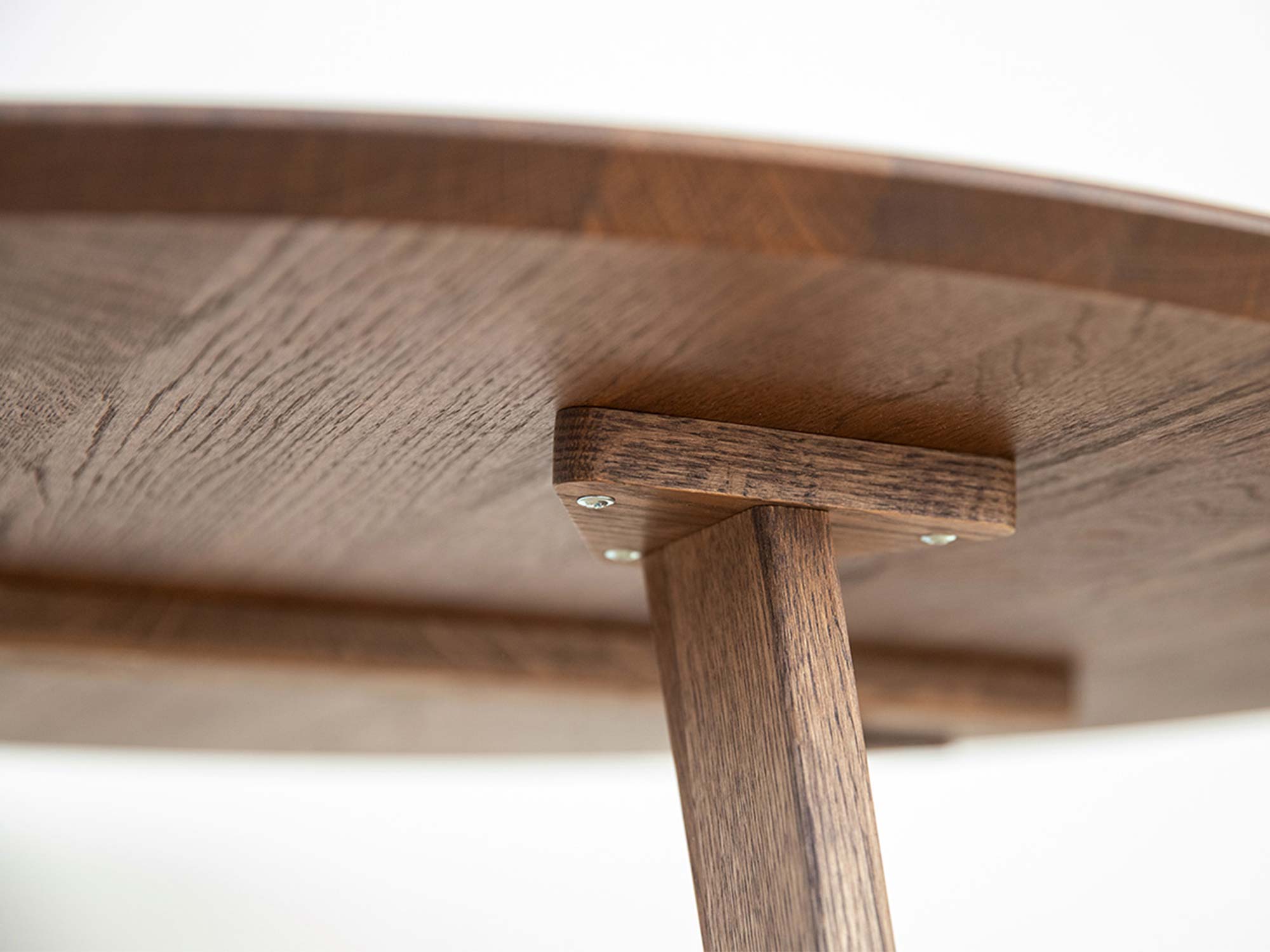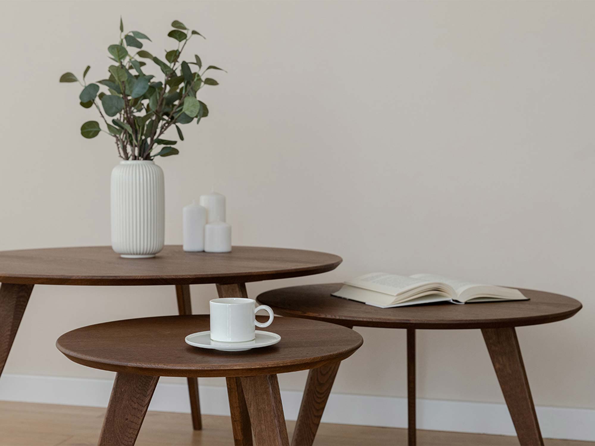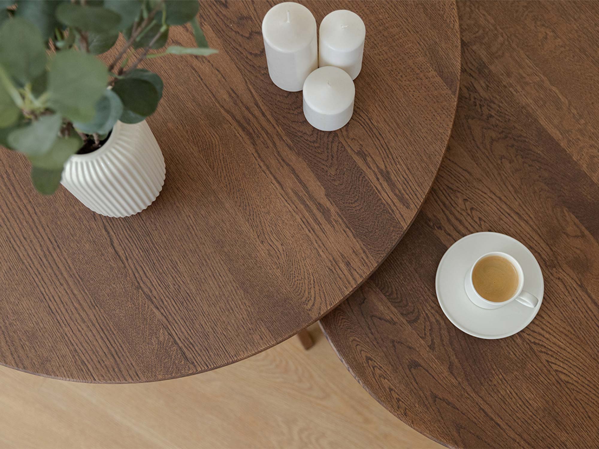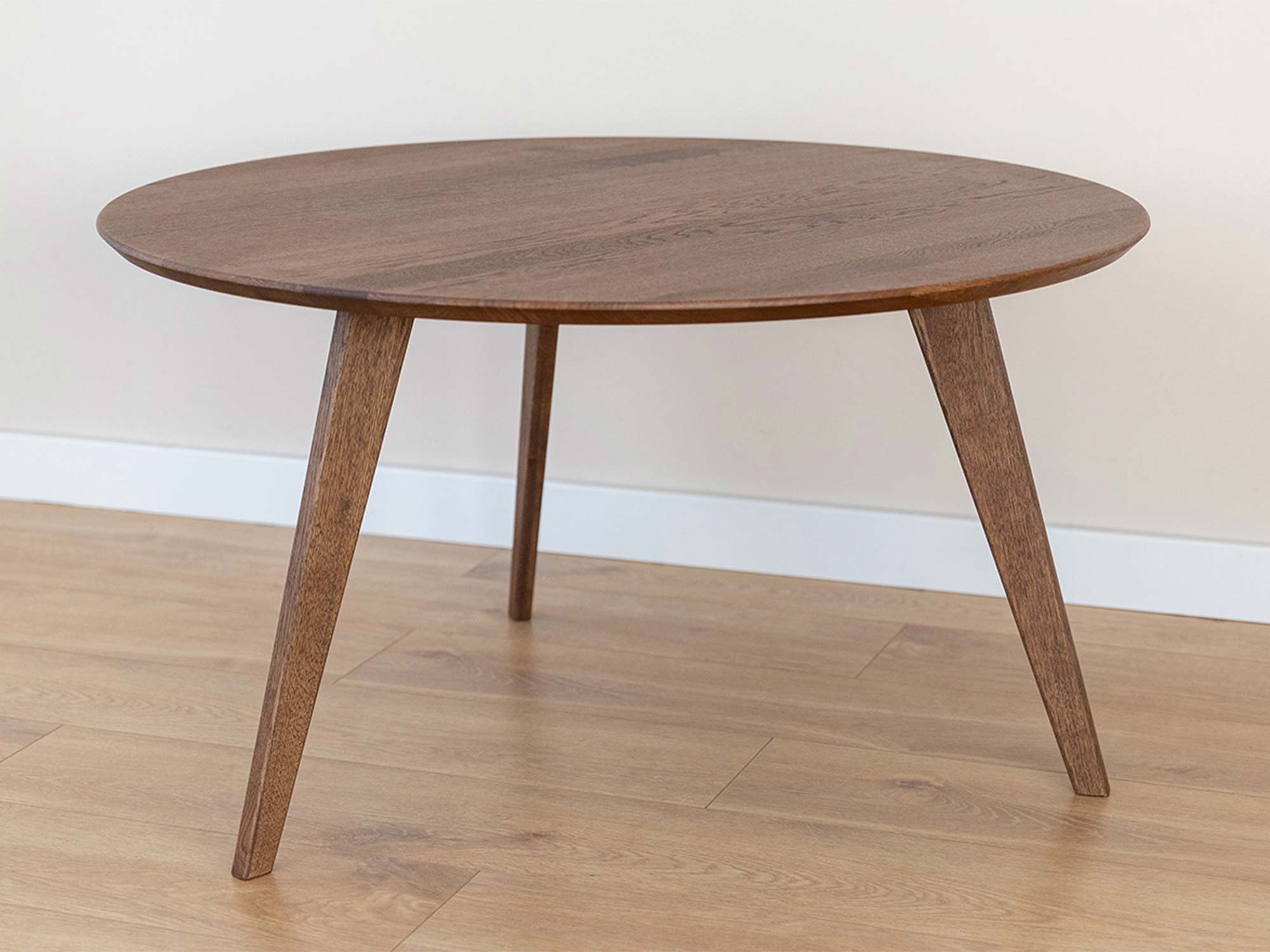 Kolor tabacco to głęboki, ciemny odcień brązu, który doskonale komponuje się z nowoczesnymi aranżacjami, jak i z klasycznymi, przytulnymi wnętrzami. Okrągły kształt blatu sprawia, że stolik zyskuje lekkość wizualną, a jednocześnie tworzy idealne miejsce do wspólnych spotkań przy kawie czy wieczornych rozmów z bliskimi. To mebel, który wprowadzi do Twojego salonu harmonię, subtelny urok i naturalne piękno drewna.