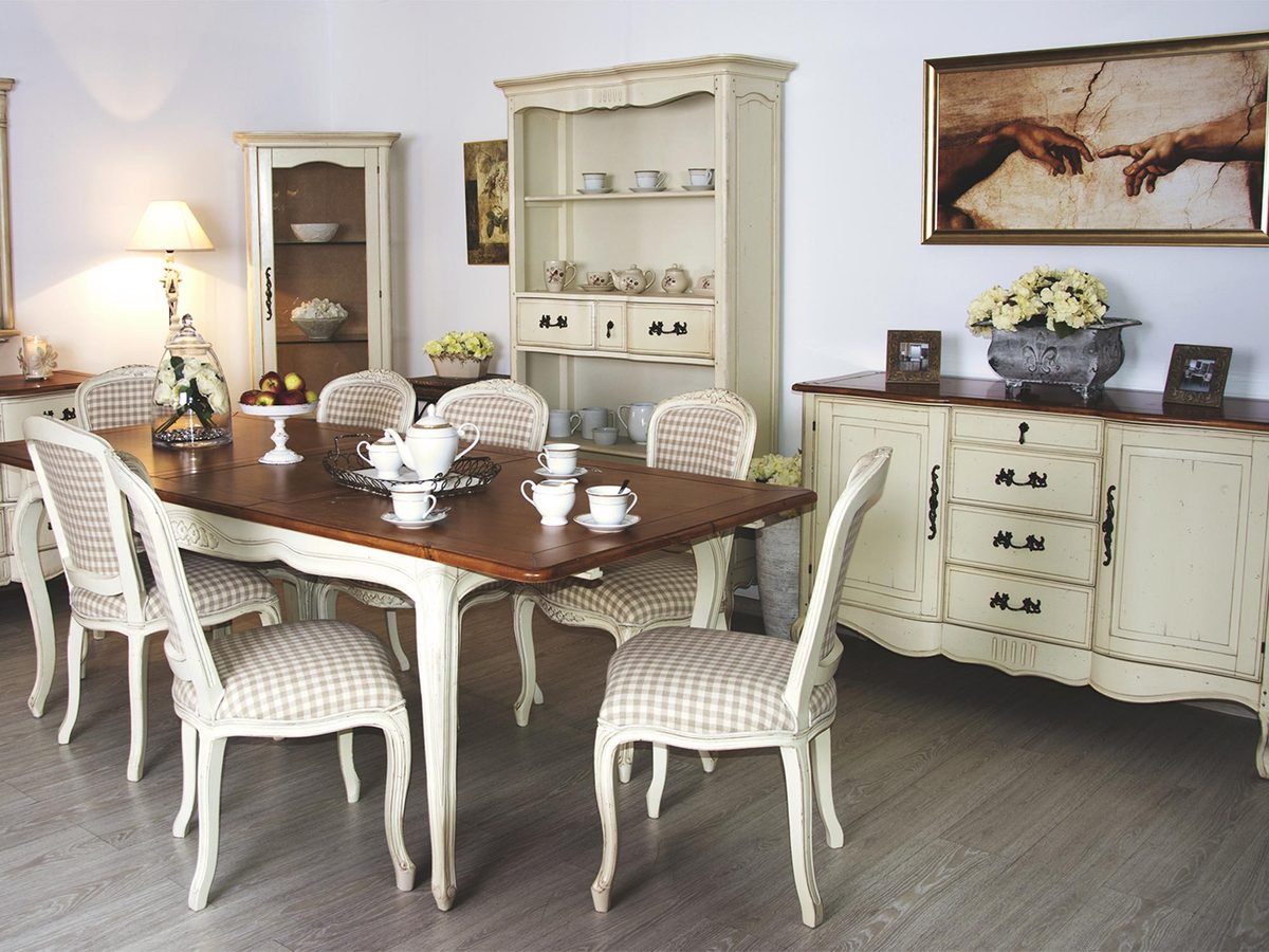 - Pięknie przecierany korpus w kolorze kości słoniowej oraz miodowy blat w połysku tworzą doskonały kontrast