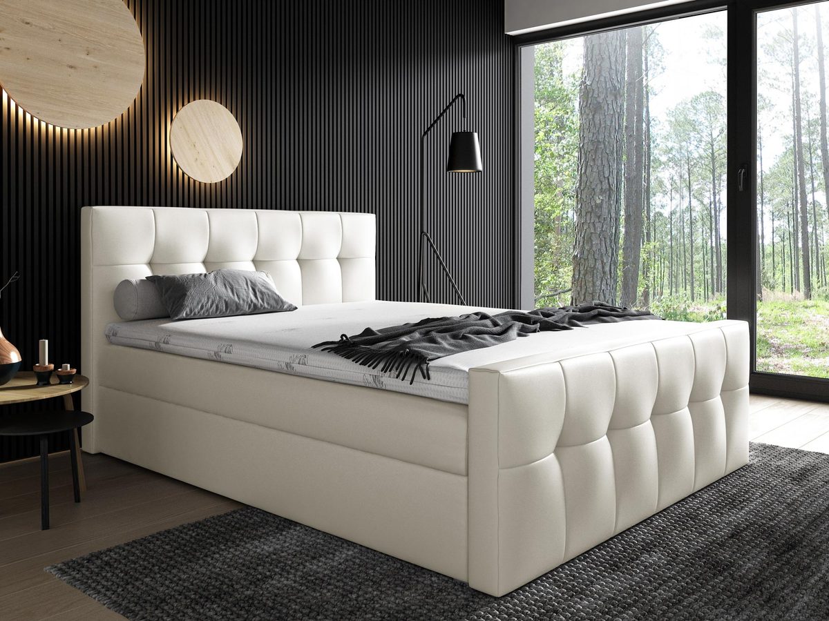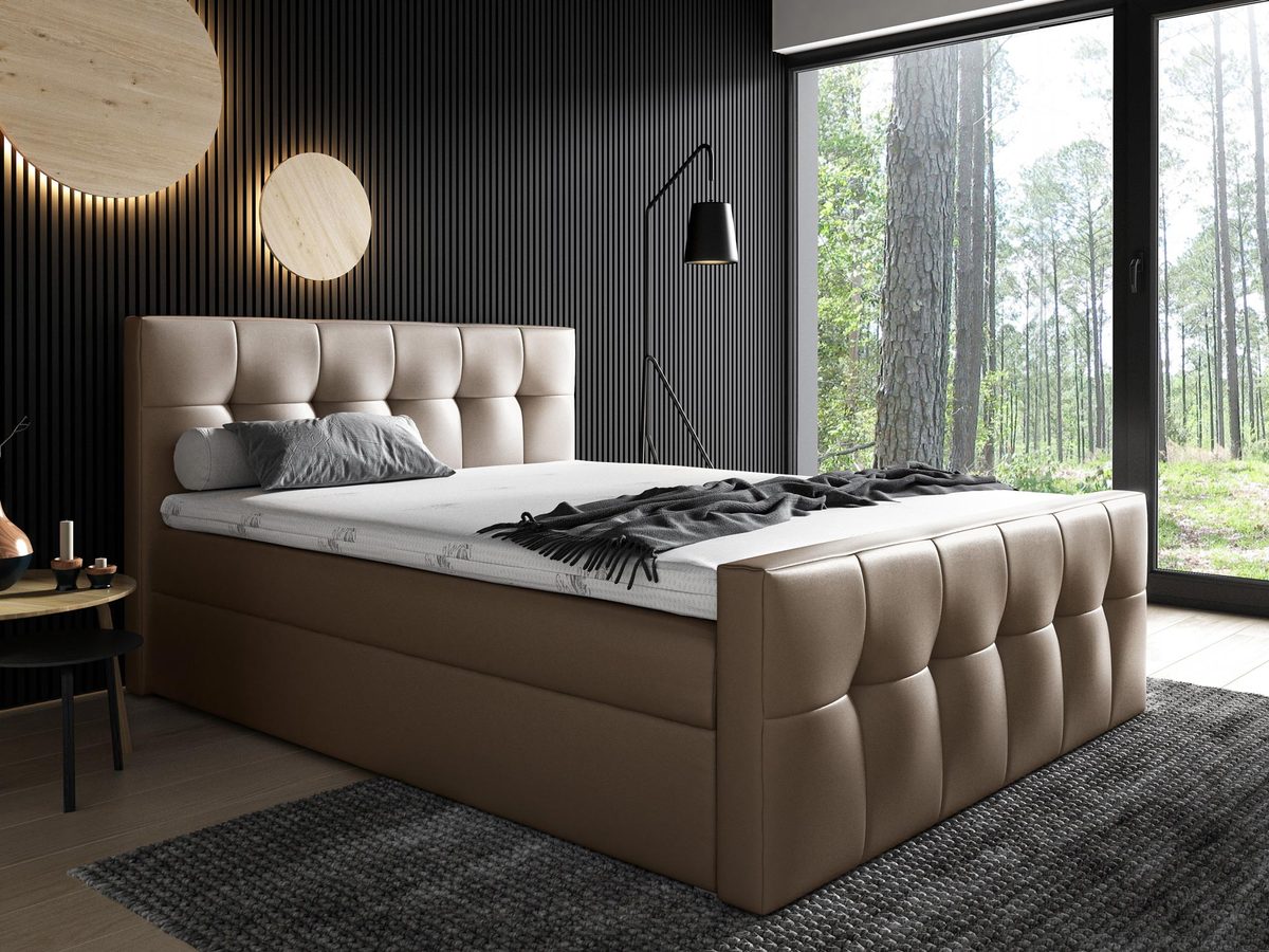 Co najważniejsze łóżko sypialniane tapicerowane CRISTIANO to połączenie nienagannej estetyki połączonej z wysoką jakością wykonania. Ponadto model ten będzie prezentować się znakomicie, a przy tym sen na nim będzie niebywałą przyjemnością dzięki zapewnionemu wysokiemu komfortowi. Co więcej jego niebanalny zagłówek i przód z przeszyciami dają znakomity i efekt i dodają stylu. Dodatkowo prezentowane łóżko posiada 2 pojemniki na pościel otwierane z obu stron, jak również wbudowany materac oraz topper, które zapewniają wstawanie wypoczętym każdego dnia.