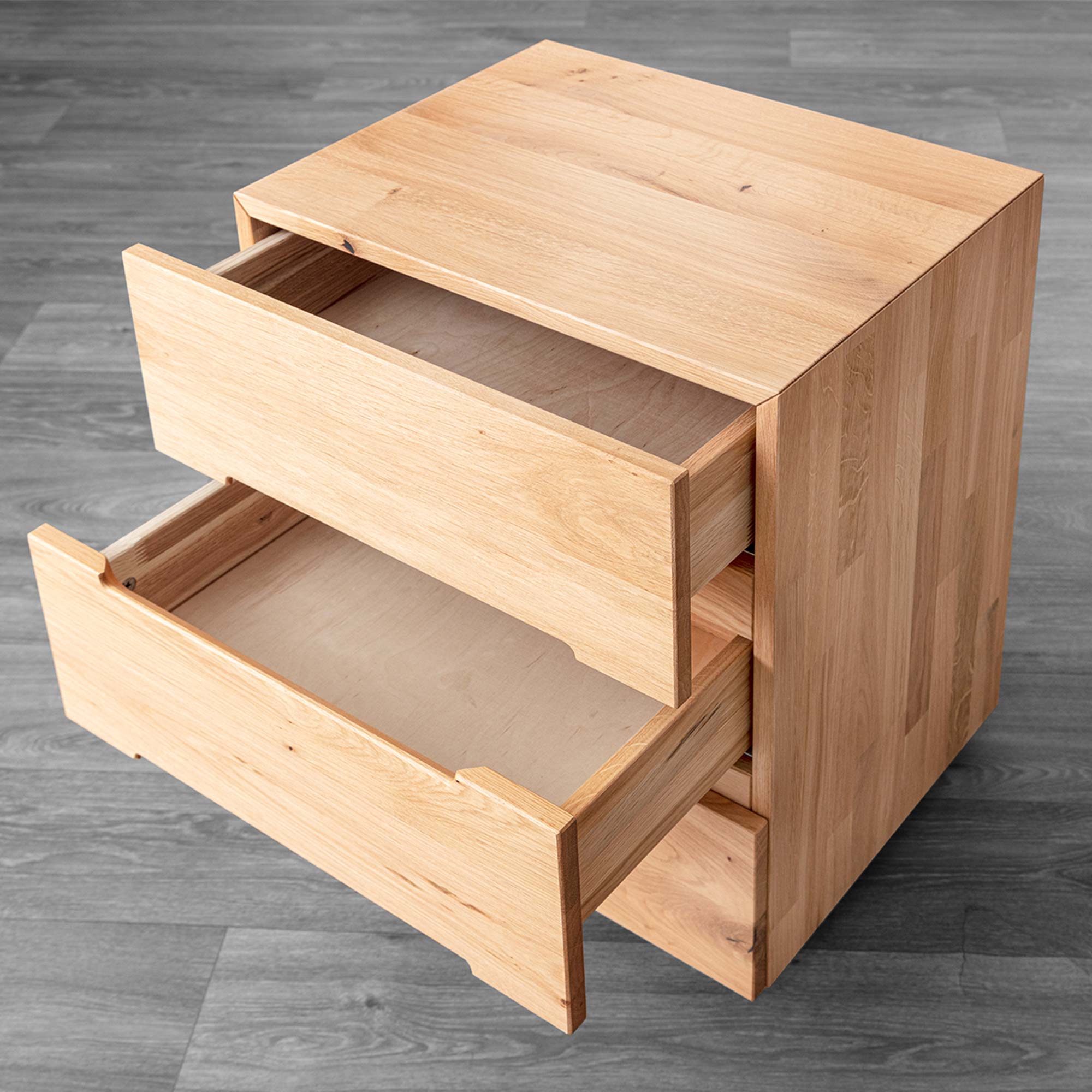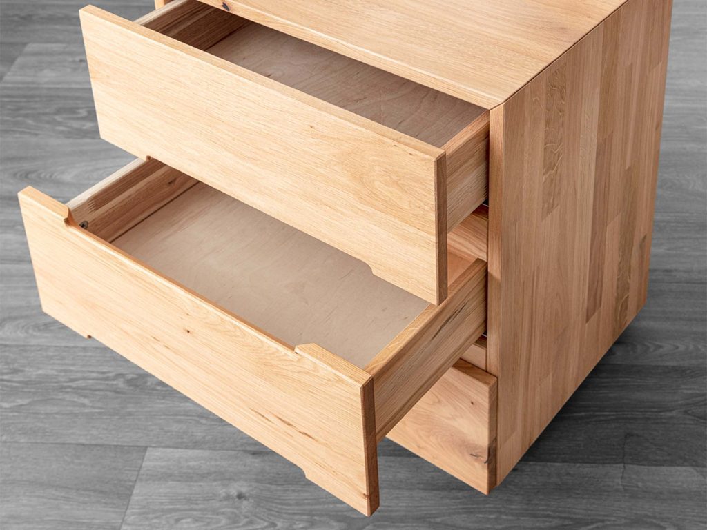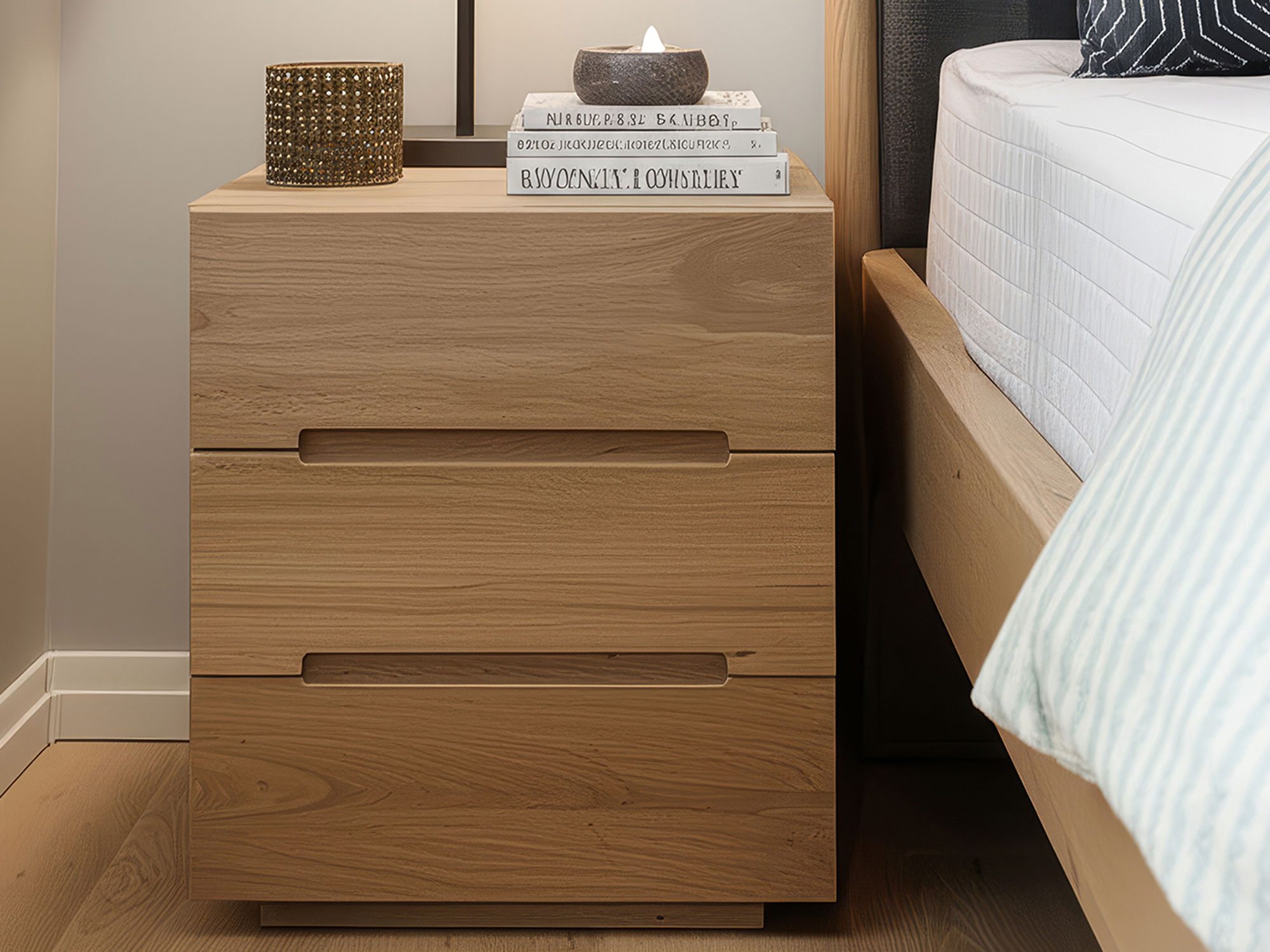 Wieczorna cisza ma swój rytuał: odkładasz książkę, gasisz lampkę i jednym, delikatnym ruchem domykasz szufladę. Drewniana szafka nocna z litego drewna Macari 3L powstała, aby ten rytuał był piękny i bezproblemowy każdego dnia. Wykonana z naturalnego, litego drewna dębowego, oferuje trzy pojemne szuflady z cichym domykiem Softclose Haefele oraz minimalistyczny front grifflos (bez uchwytów). To mebel, który łączy w sobie trwałość, elegancję i praktyczność – w idealnych proporcjach.