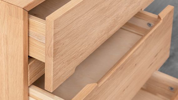 Szafkę wykończono w sposób, który podkreśla jej naturę i ułatwia pielęgnację. Delikatnie satynowa powierzchnia wydobywa głębię słojów, a przy tym jest przyjemna w dotyku i łatwa w utrzymaniu czystości. To mebel na lata – odpowiednio pielęgnowany, zyskuje z czasem jeszcze więcej klasy i charakteru.