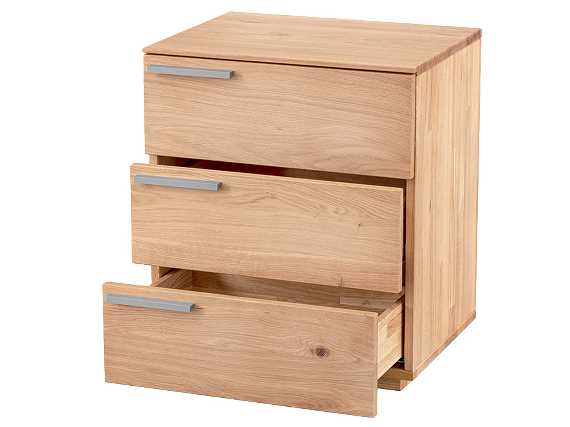 Elegancka drewniana szafka nocna Arella 3L-RE to mebel, który harmonijnie łączy piękno drewna z nowoczesnym komfortem. Jej trzy pojemne szuflady pozwolą Ci zapanować nad porządkiem, a system Softclose Haefelle zadba o wygodę i ciszę w codziennym użytkowaniu. To inwestycja w spokój, estetykę i trwałość na lata.
